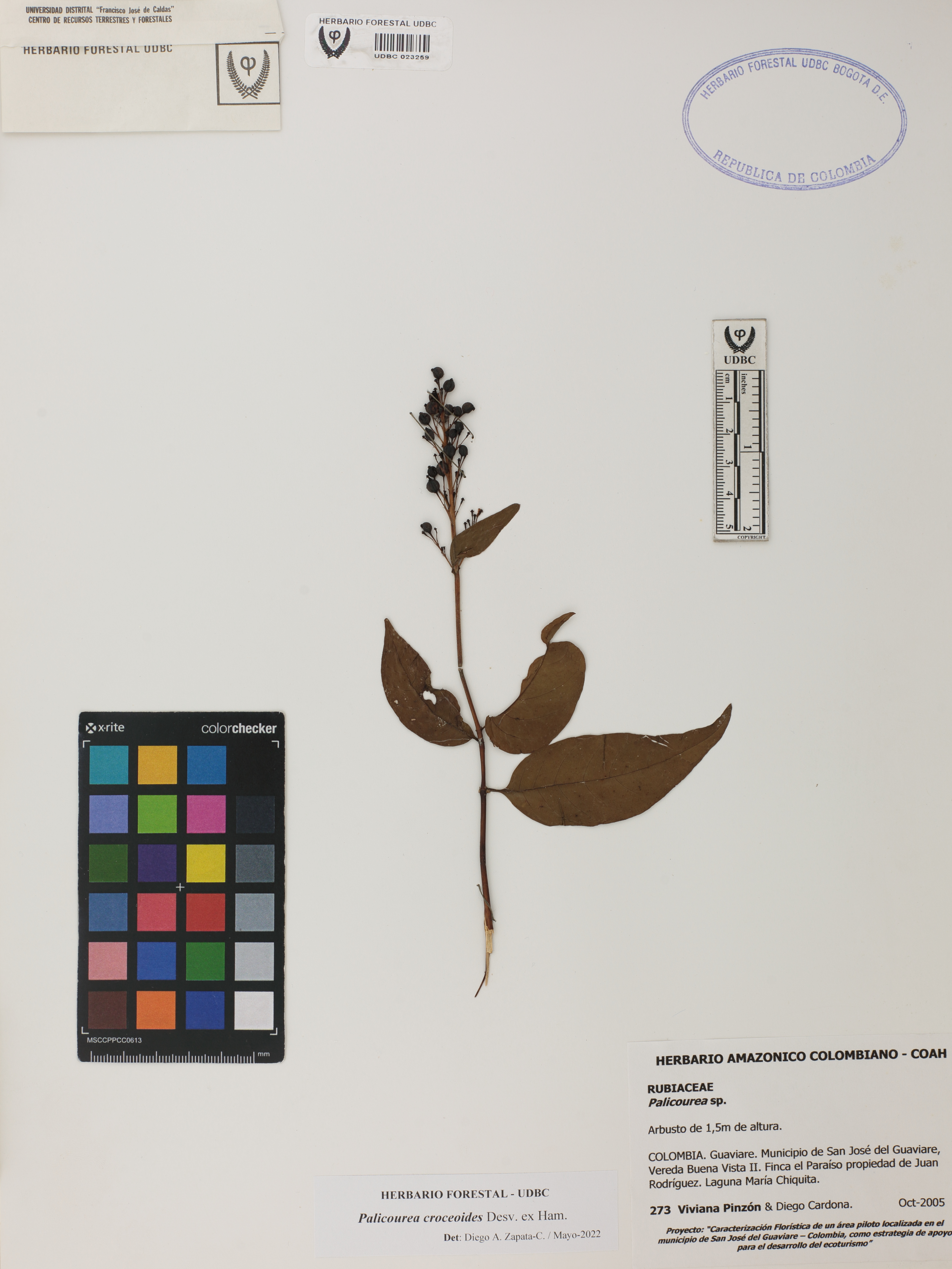 | dc.description | Fotografía del ejemplar Pinzón, V. 273, determinado como Palicourea croceoides en el año 2022 | |