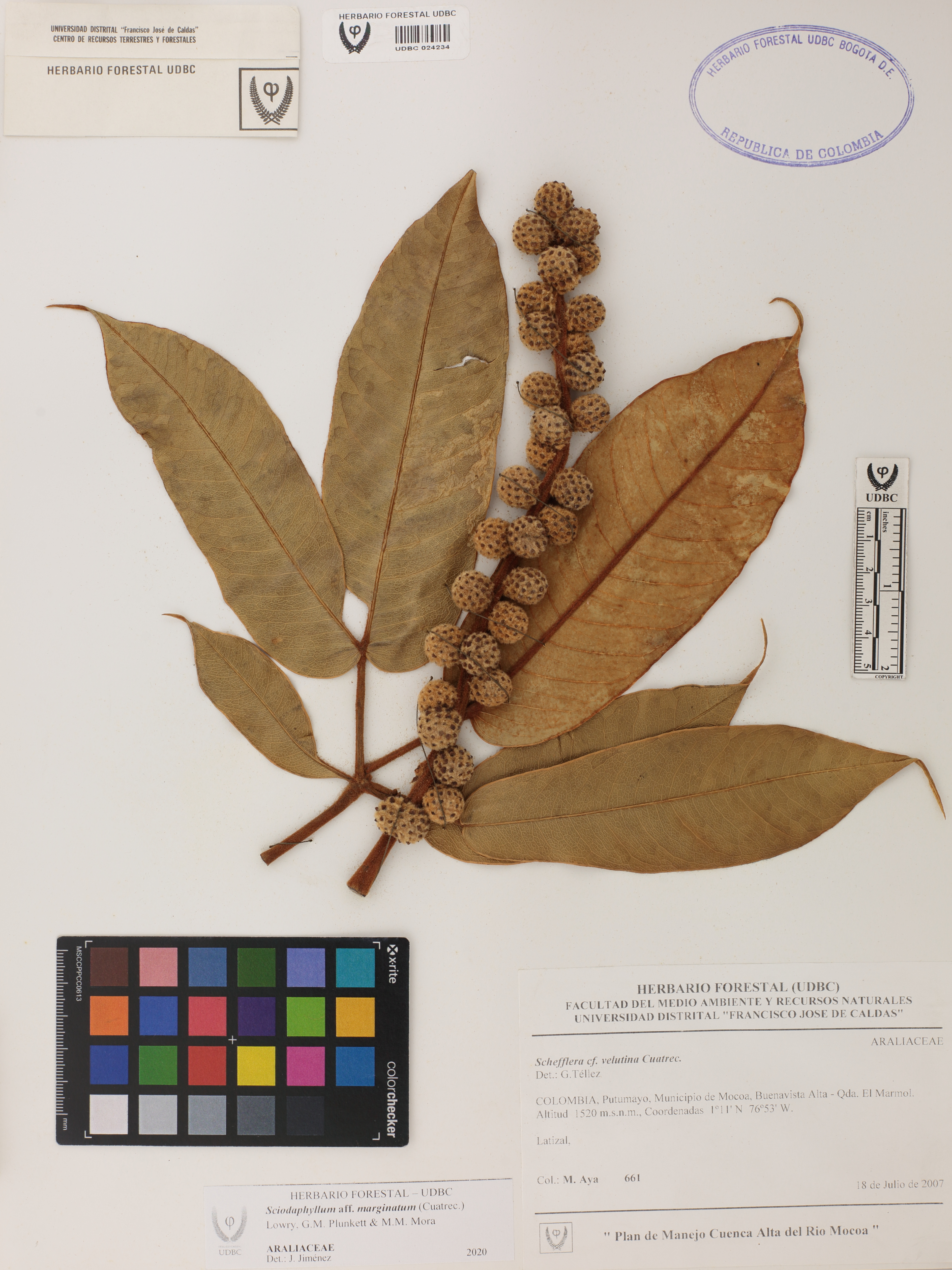 Fotografía del ejemplar Aya, M. 661, determinado como Sciodaphyllum marginatum en el año 2020