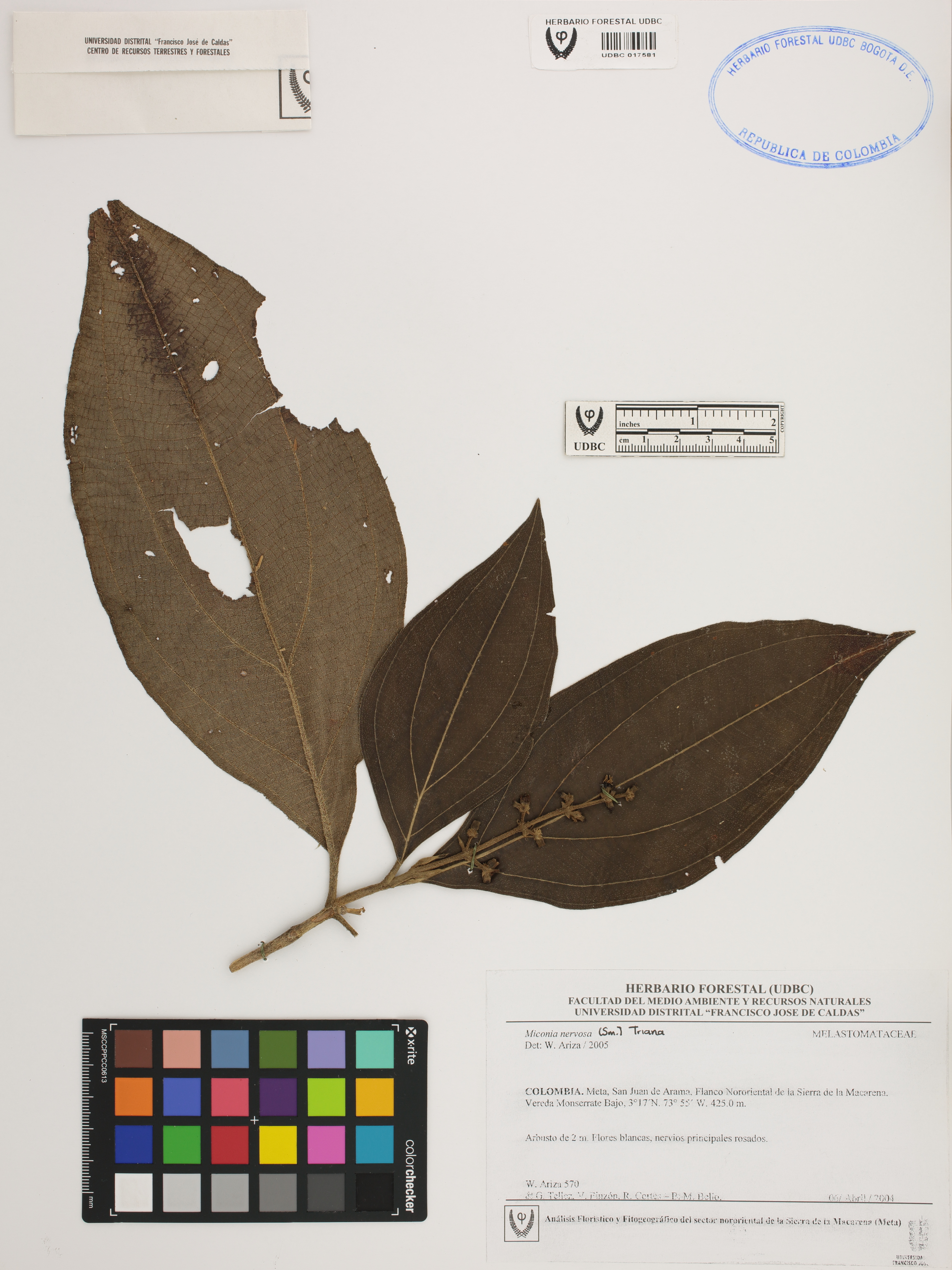 Fotografía del ejemplar Ariza, W. 570, determinado como Miconia nervosa en el año 2005