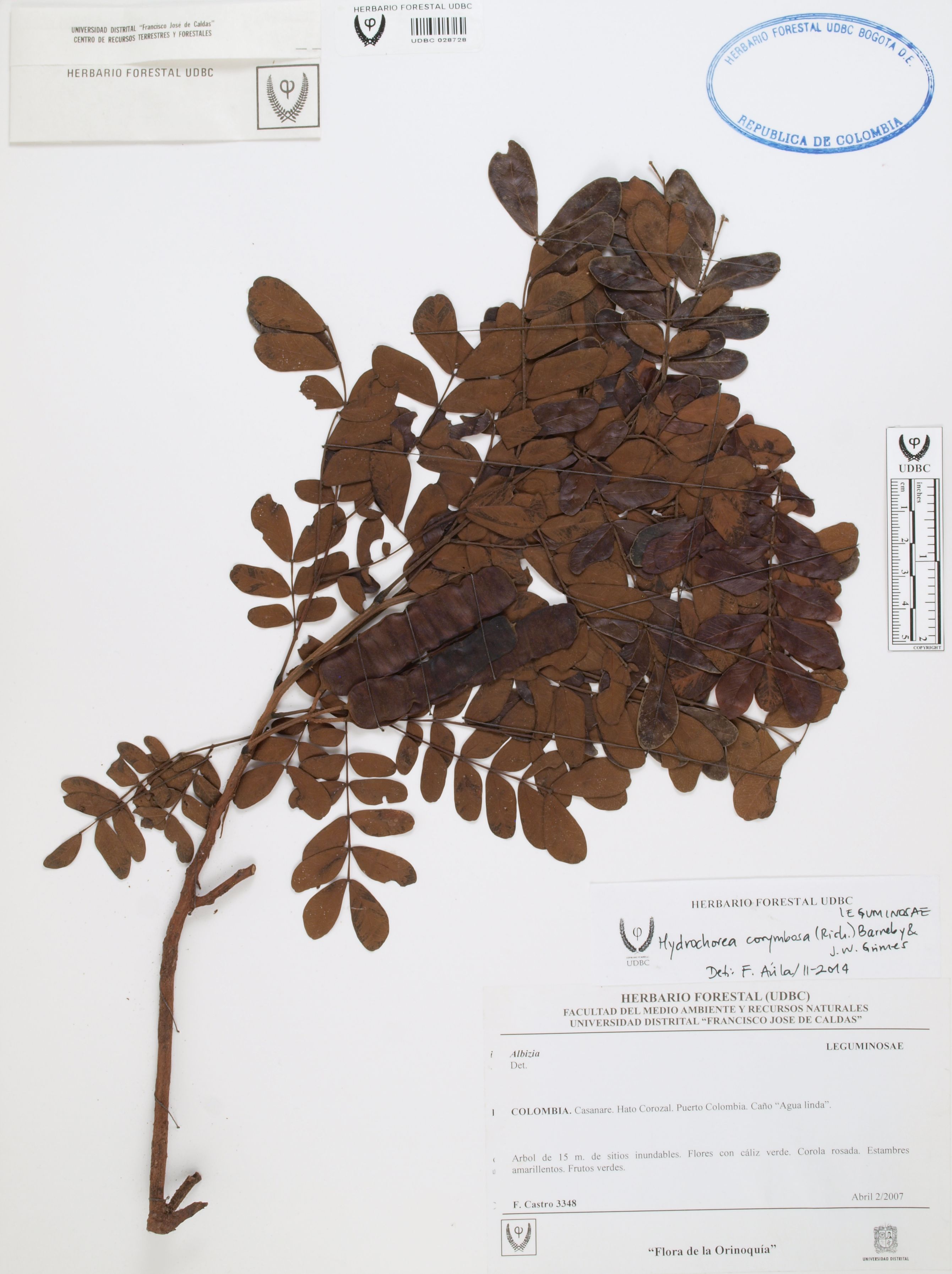 Fotografía del ejemplar Castro, F. 3348, determinado como Hydrochorea corymbosa en el año 2014
