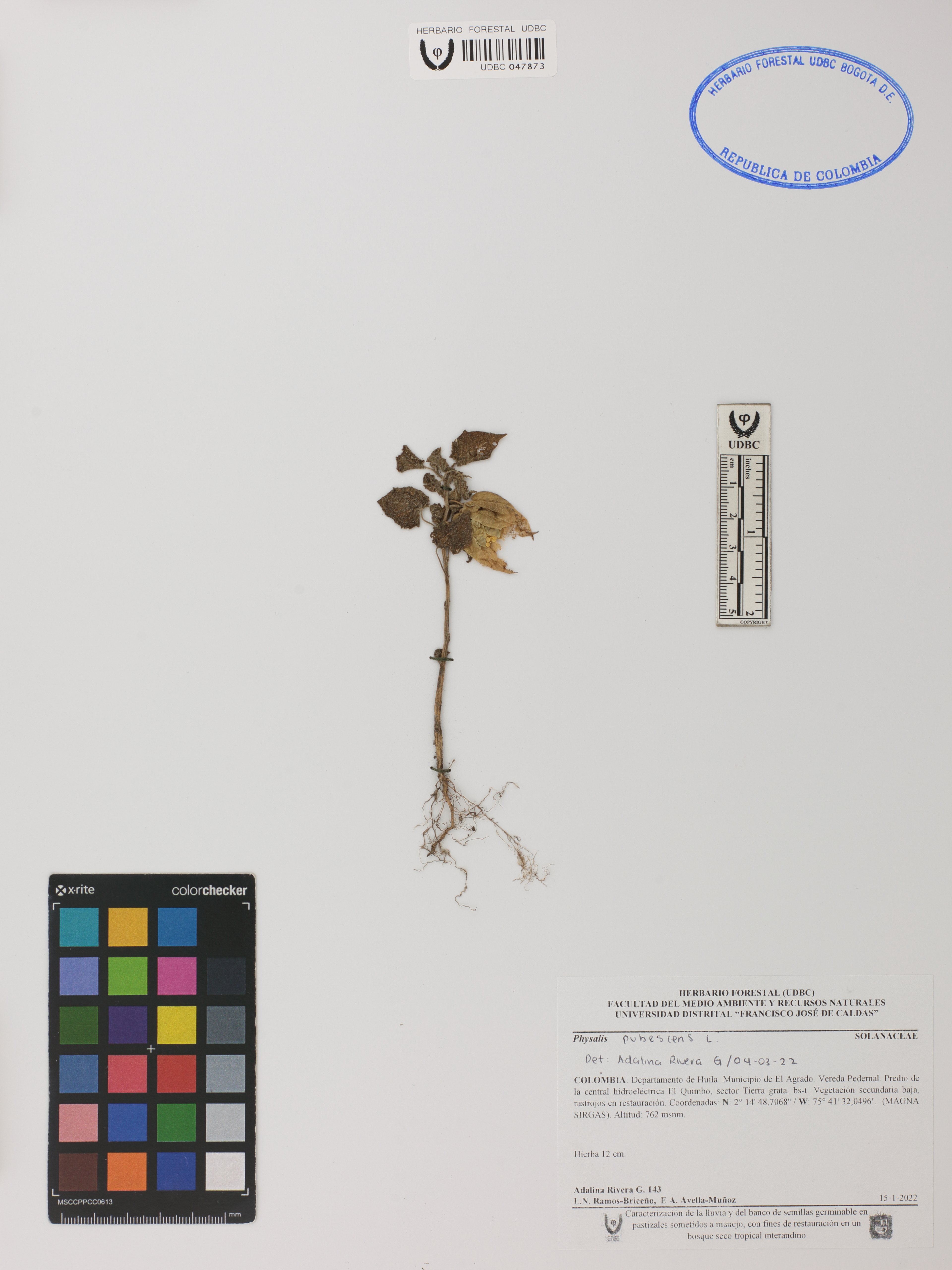 Fotografía del ejemplar Rivera-G., A. 143, determinado como Physalis pubescens en el año 2022