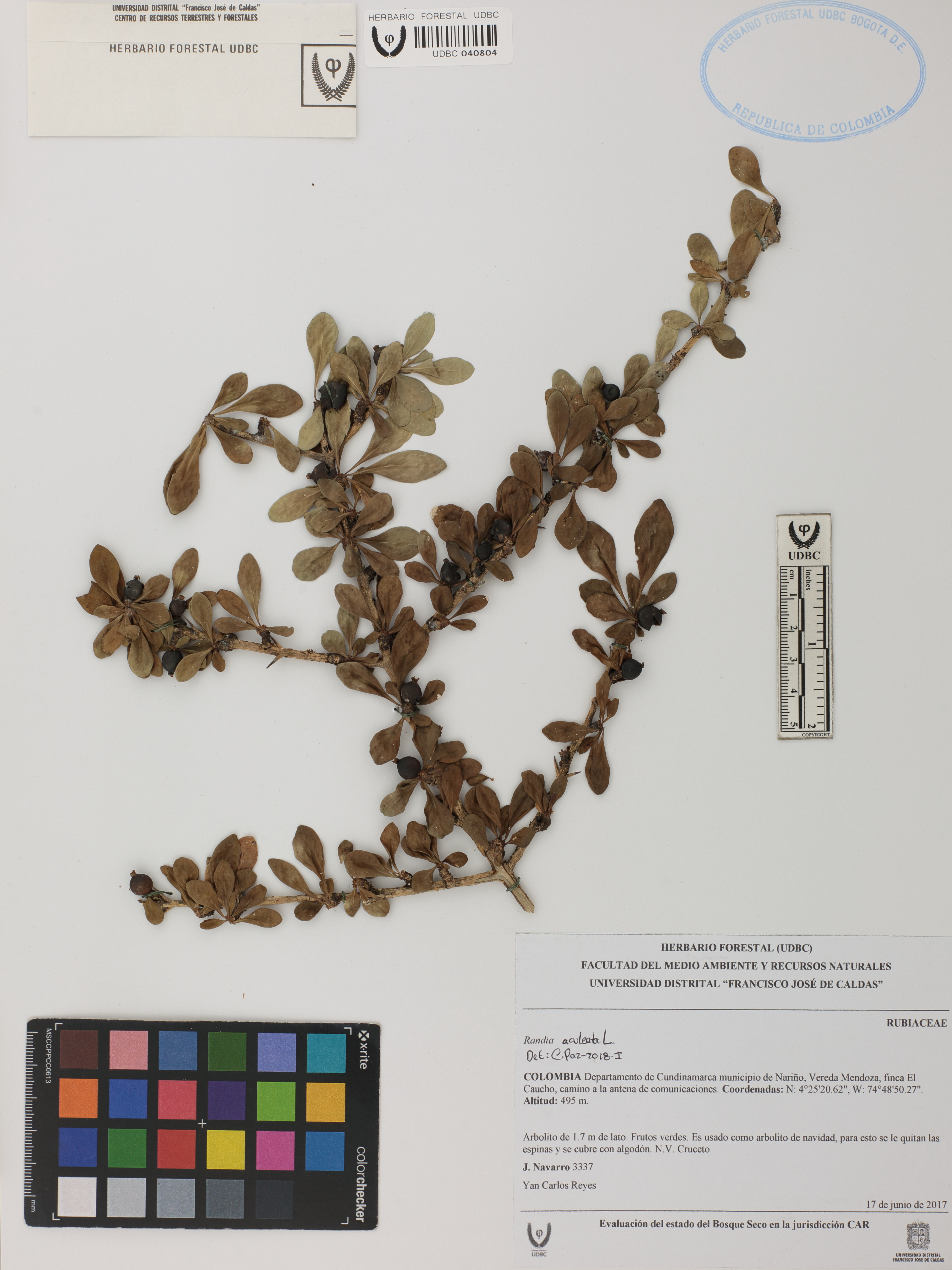 | dc.description | Fotografía del ejemplar Navarro, J. 3337, determinado como Randia aculeata en el año 2018 | |
