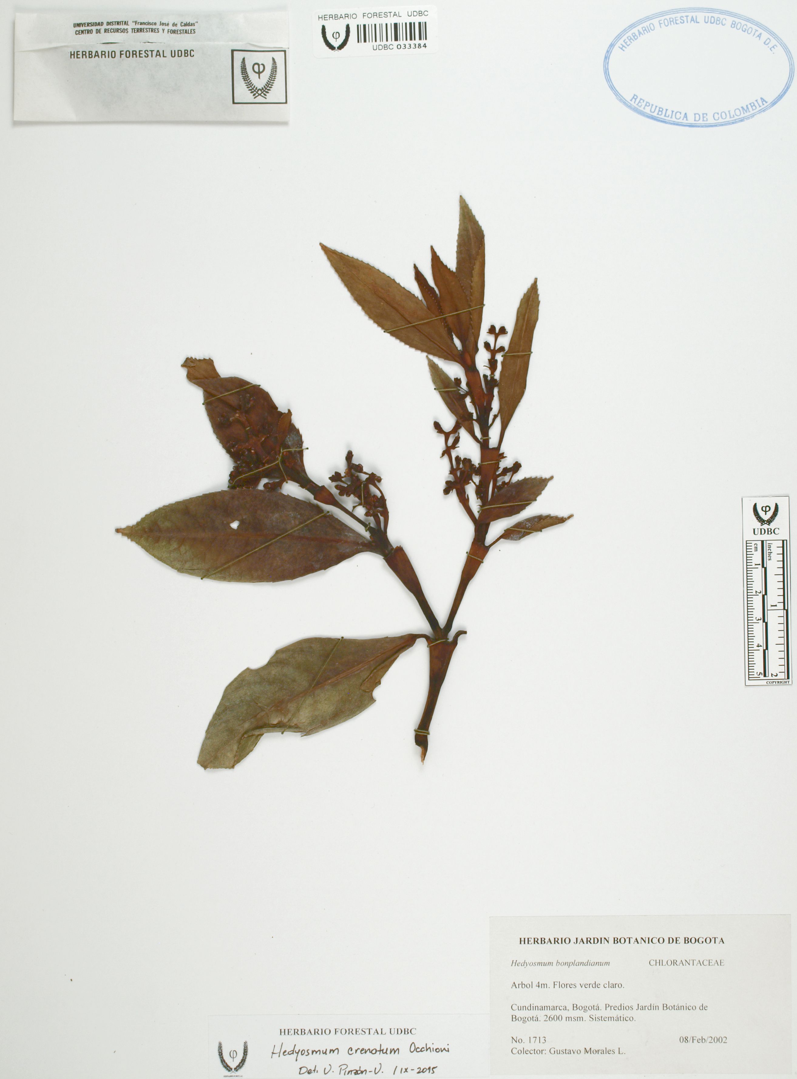 | dc.description | Fotografía del ejemplar Morales, G. 1713, determinado como Hedyosmum crenatum en el año 2015 | |
