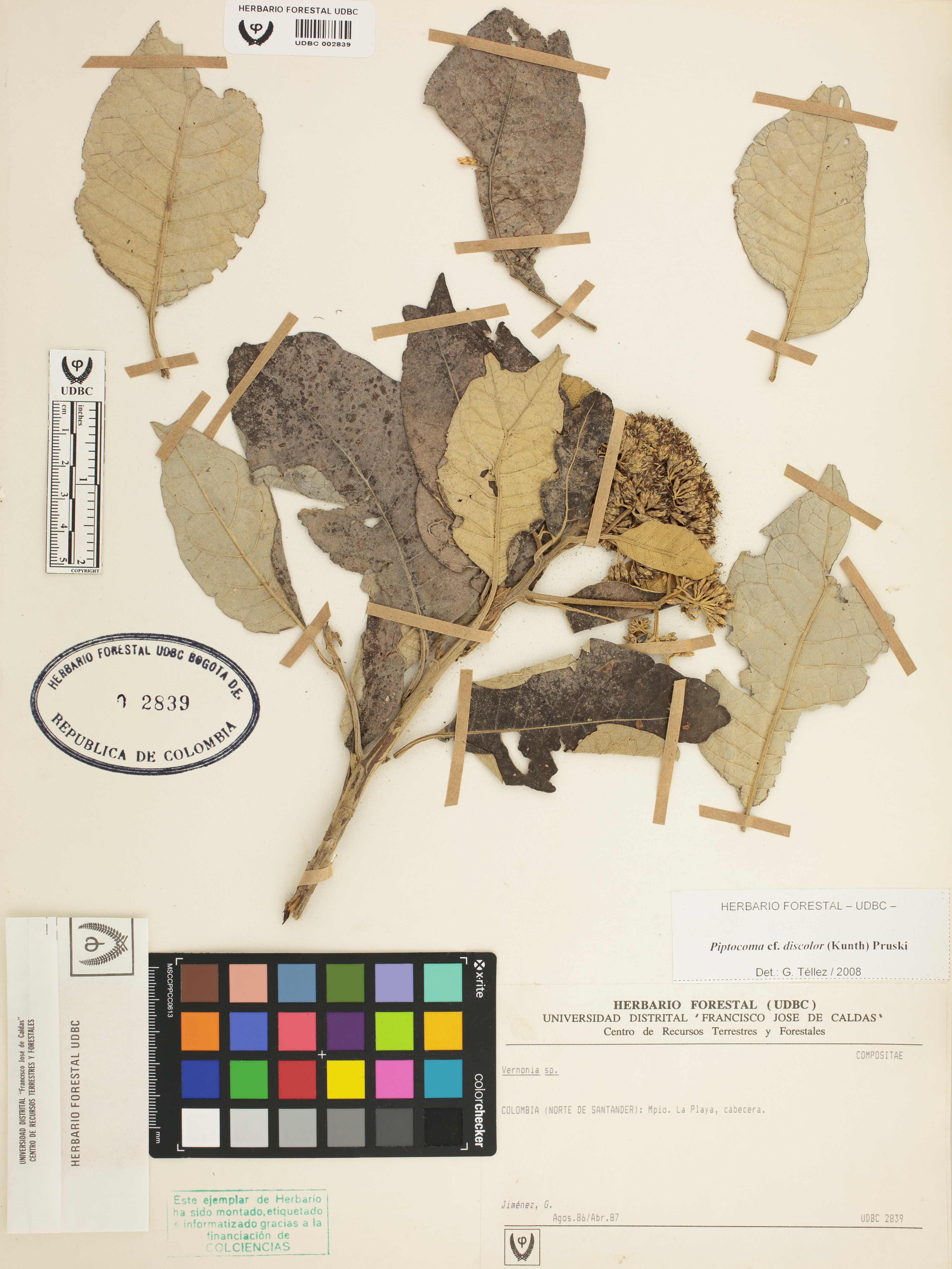 | dc.description | Fotografía del ejemplar Jiménez, G., determinado como Piptocoma discolor en el año 2008 | |