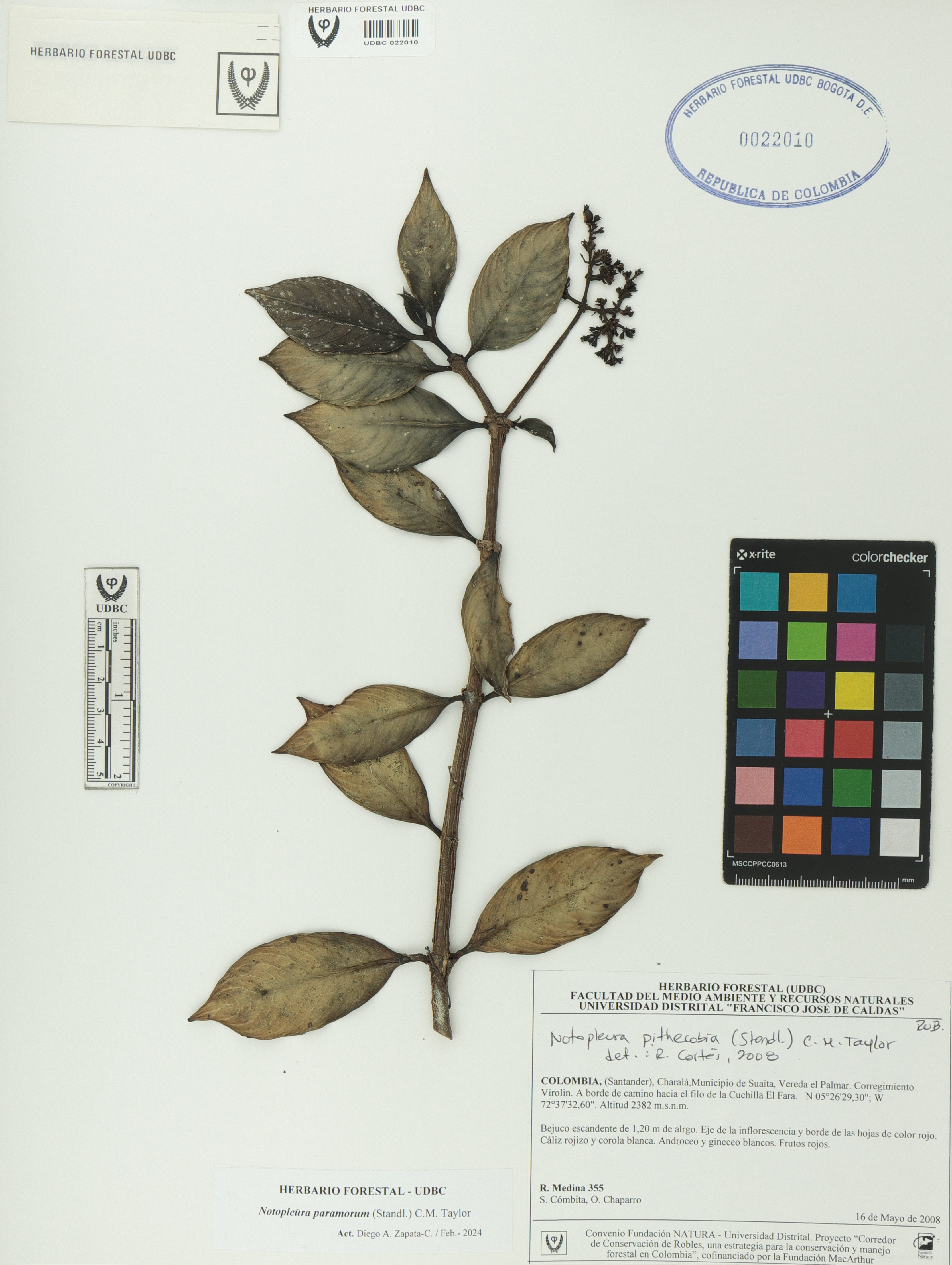 Fotografía del ejemplar Medina, R. 355, determinado como Notopleura paramorum en el año 2008