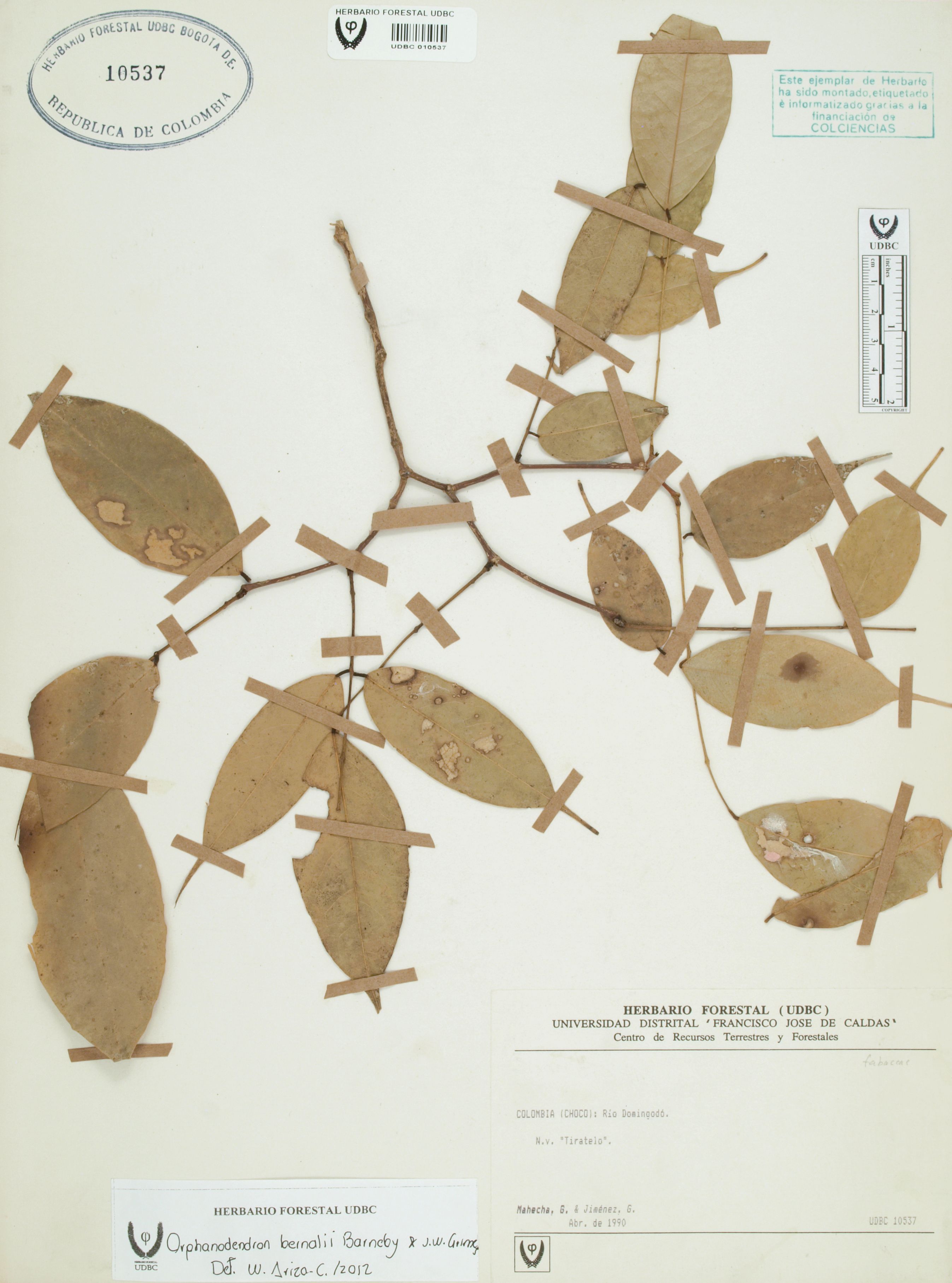 | dc.description | Fotografía del ejemplar Mahecha, G., determinado como Orphanodendron bernalii en el año 2012 | |