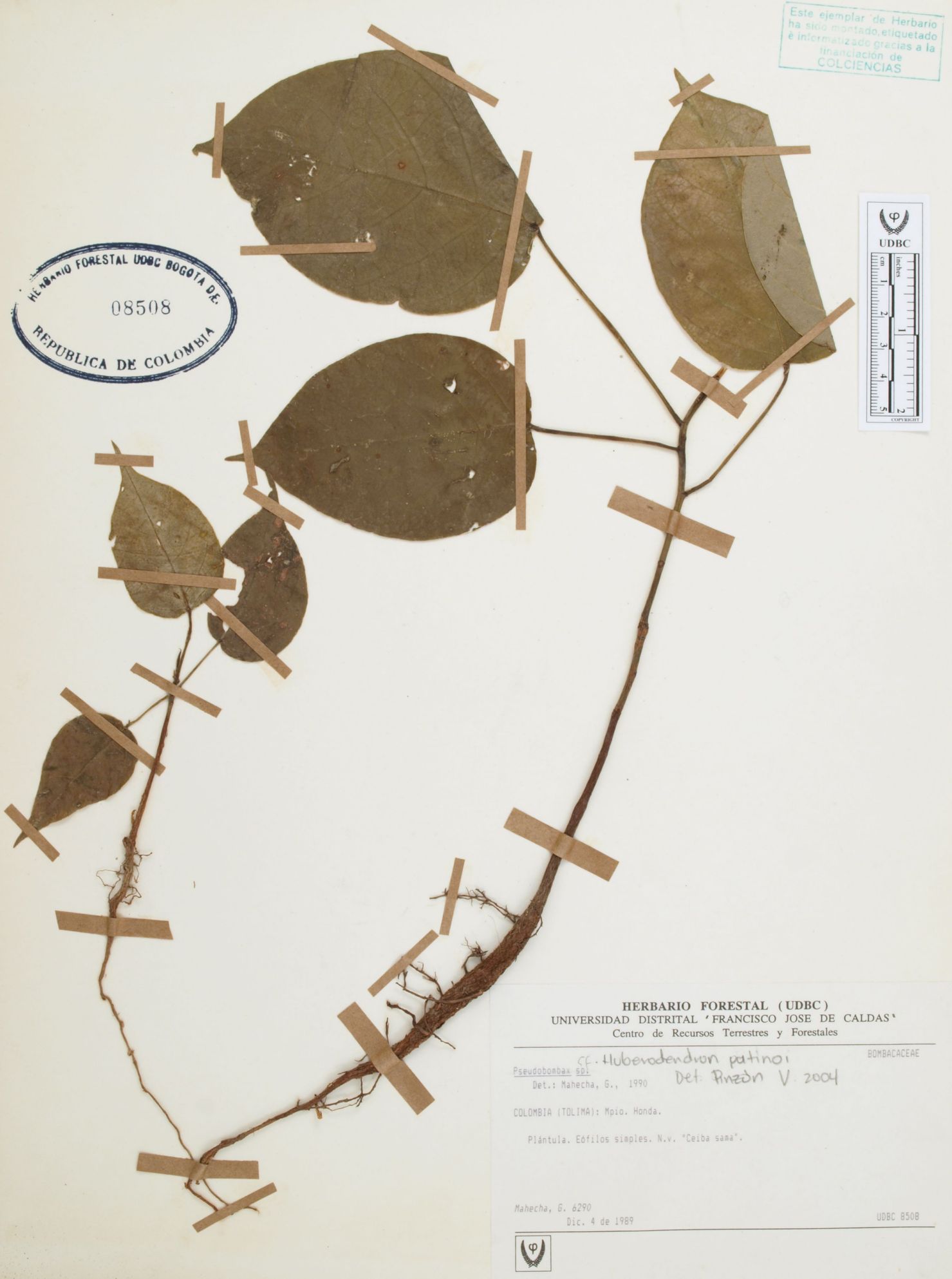 Fotografía del ejemplar Mahecha, G. 6290, determinado como Huberodendron patinoi en el año 2004