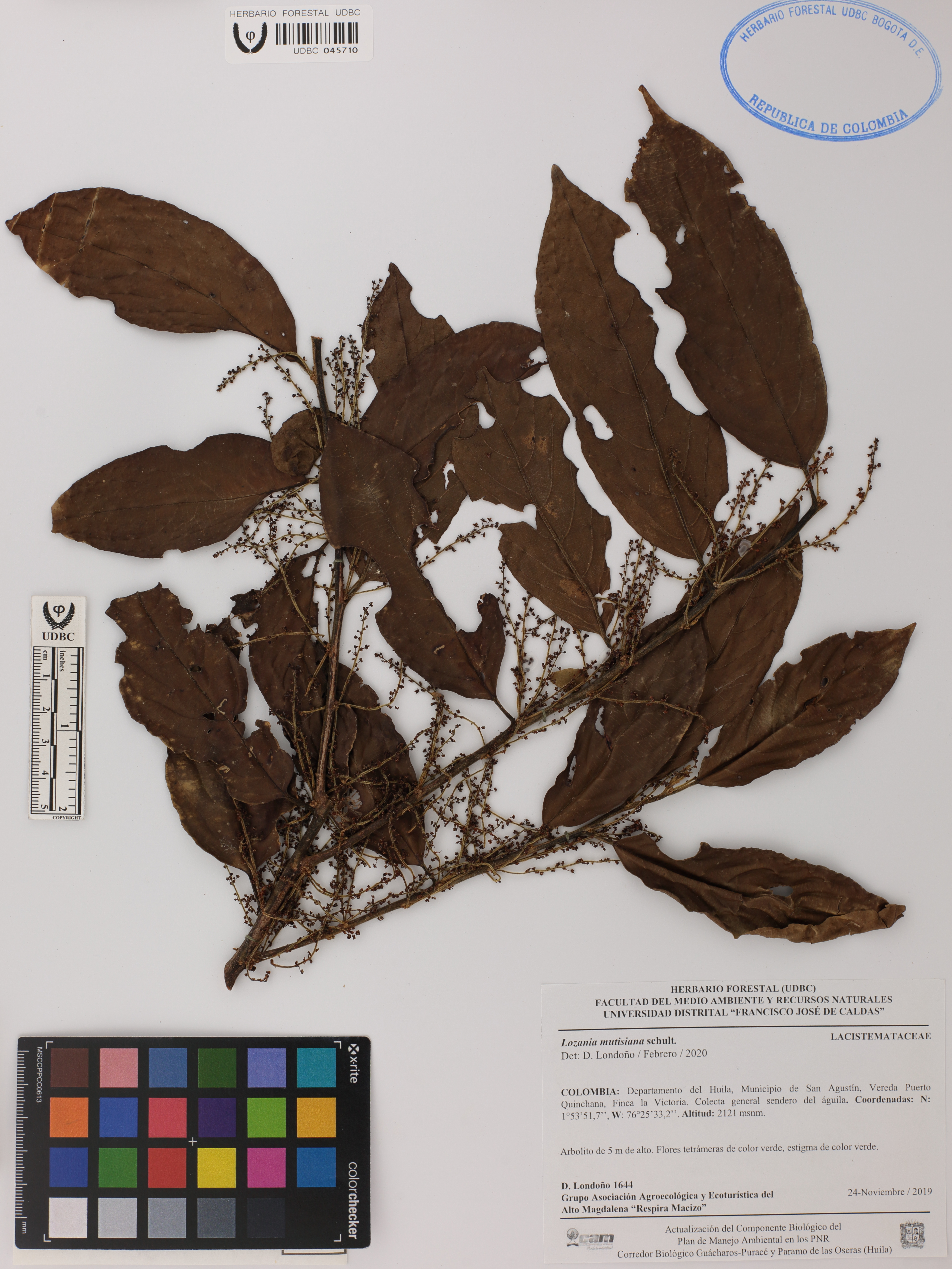 Fotografía del ejemplar Londoño, D. 1644, determinado como Lozania mutisiana en el año 2020