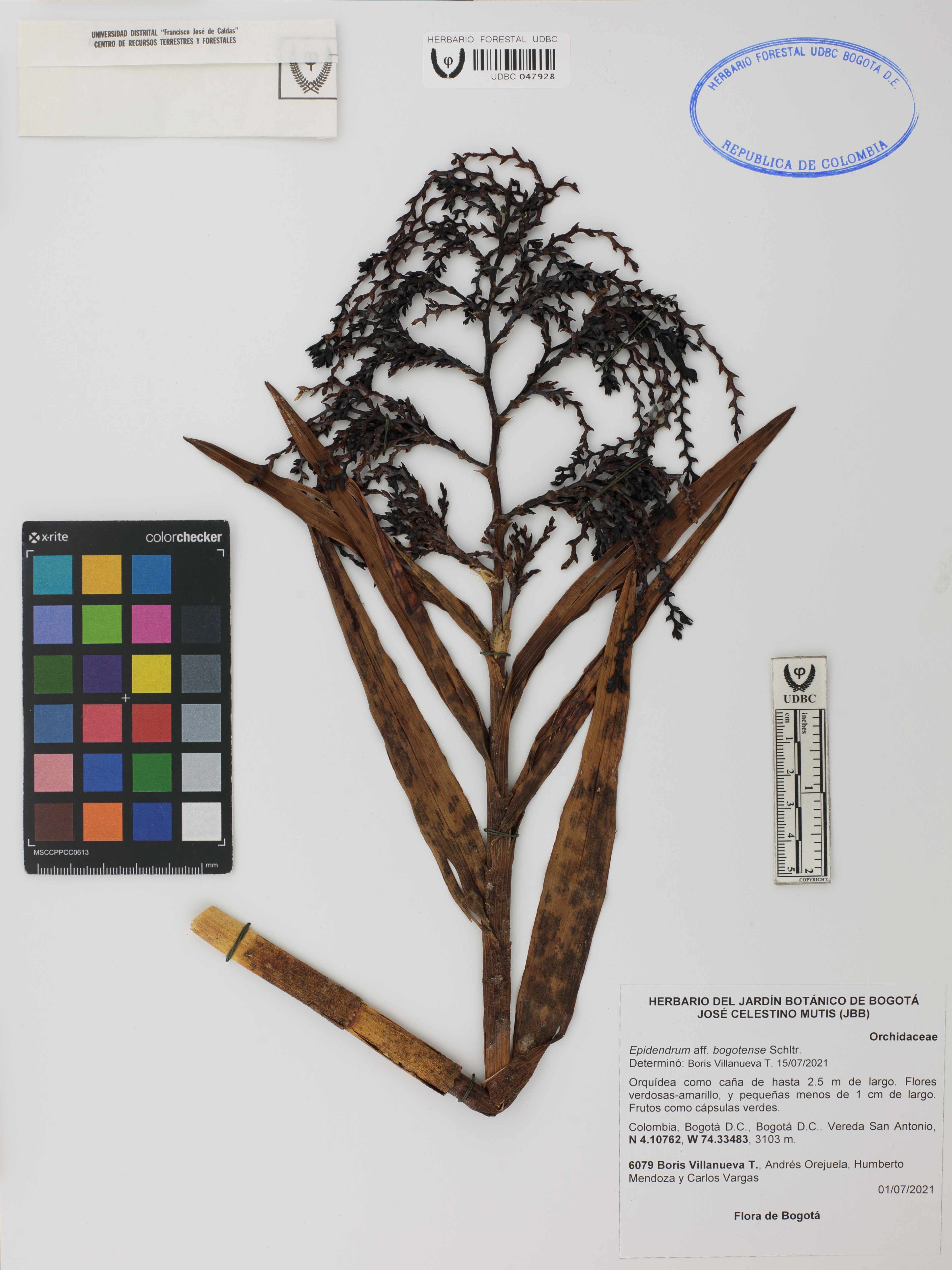 Fotografía del ejemplar Villanueva, B. 6079, determinado como Epidendrum bogotense en el año 2021