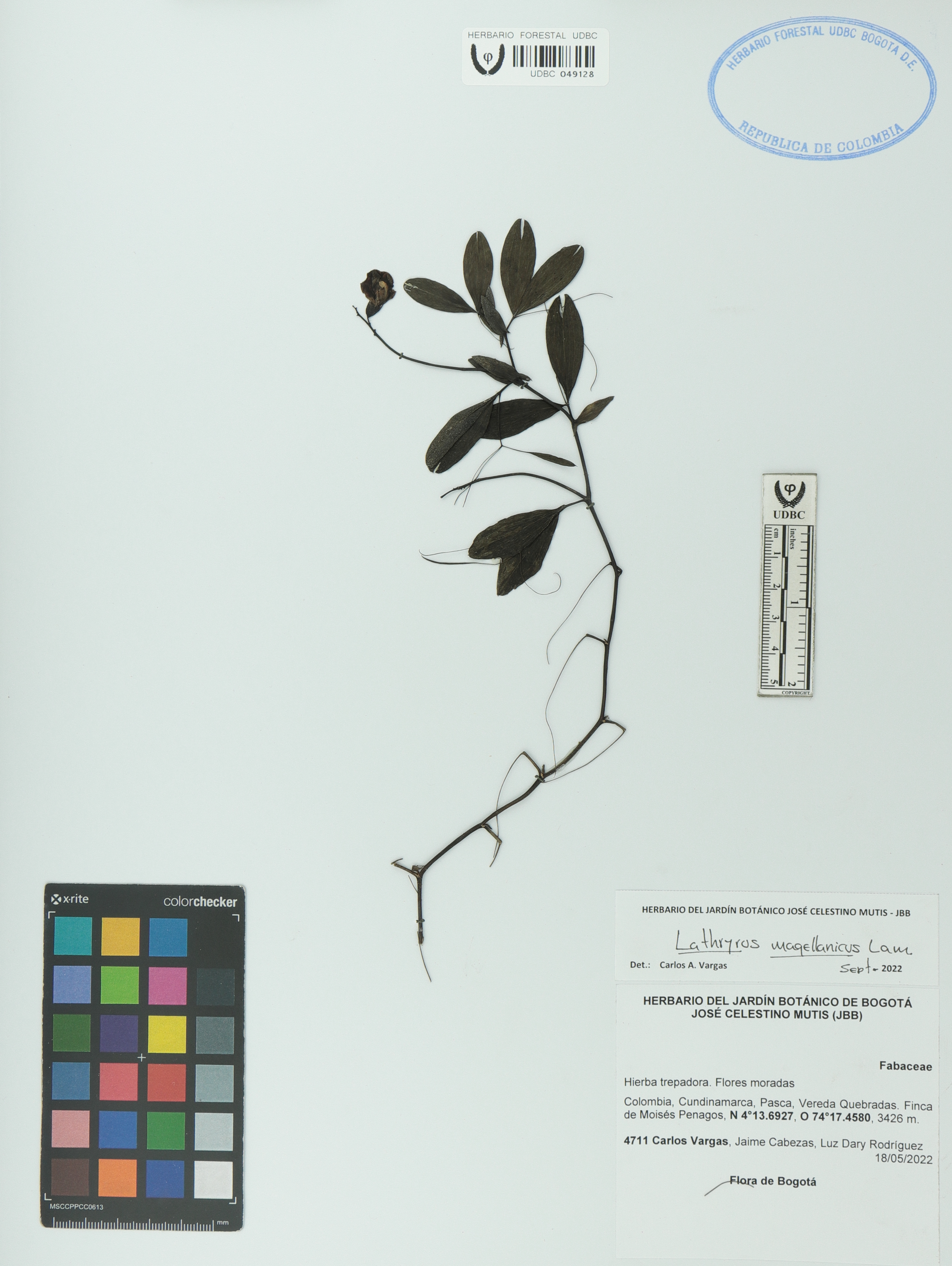 Fotografía del ejemplar Vargas, C. 4711, determinado como Lathyrus magellanicus en el año 2022