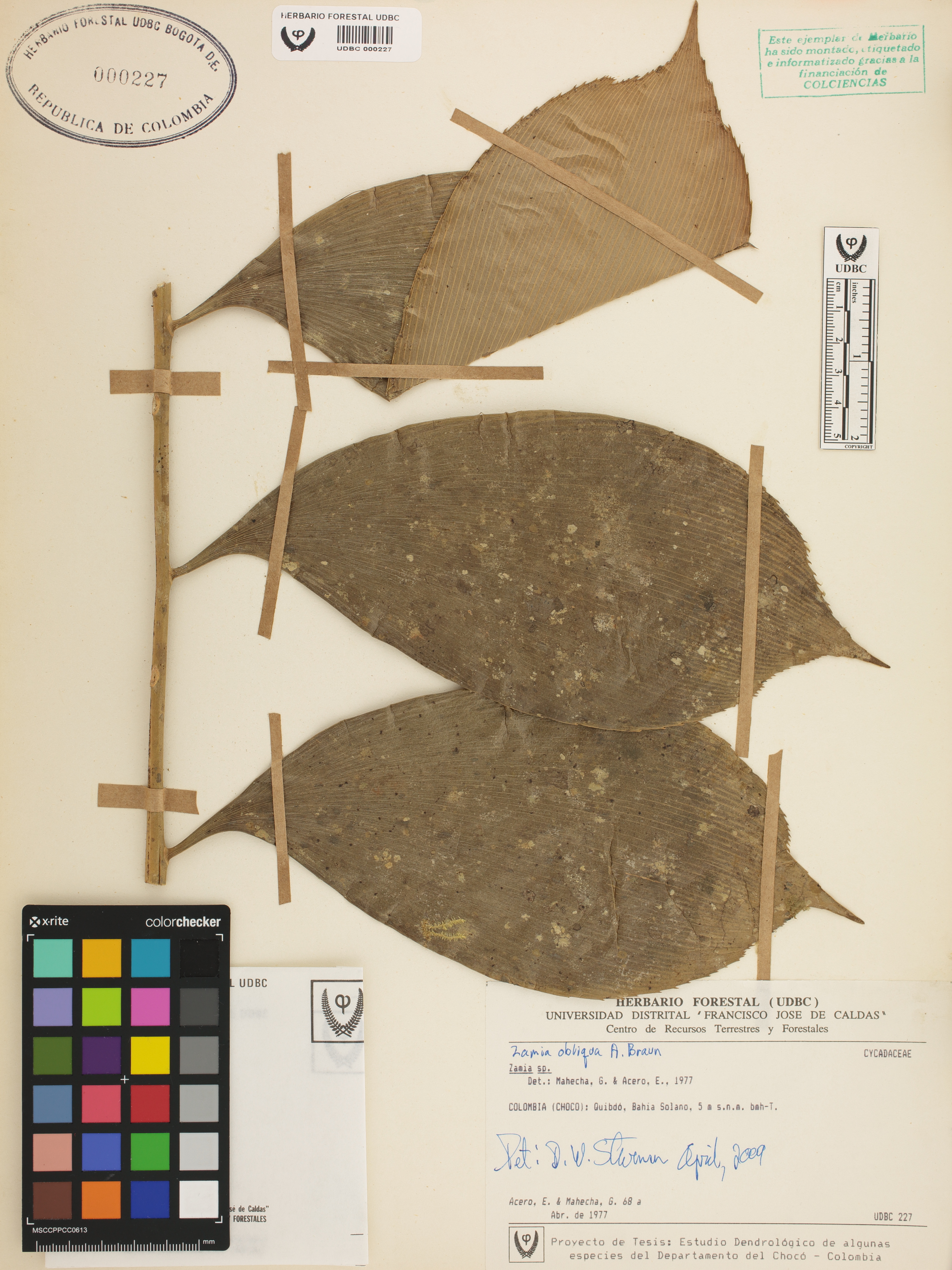 Fotografía del ejemplar Acero, E. 68, determinado como Zamia obliqua en el año 2009