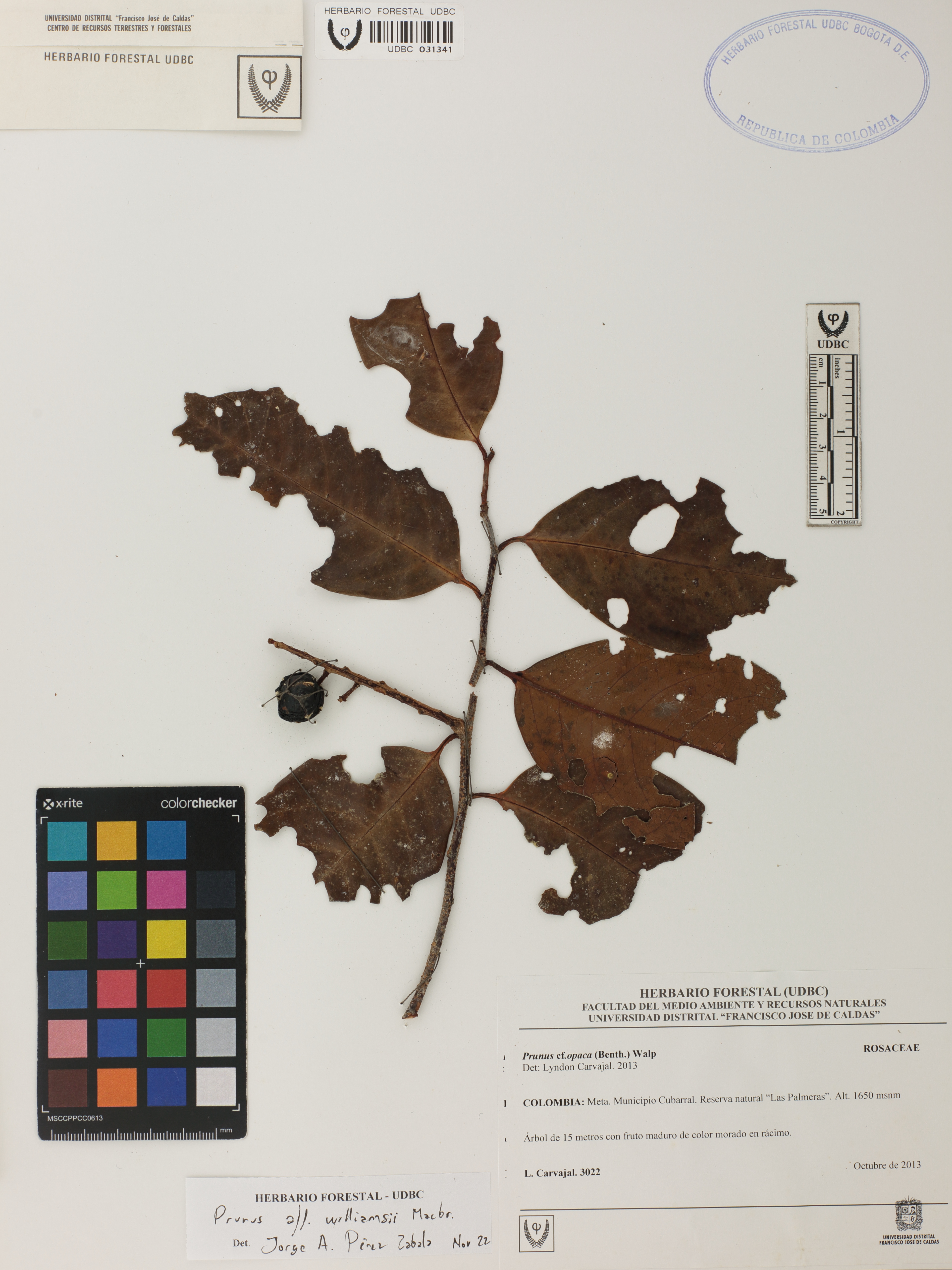 | dc.description | Fotografía del ejemplar Carvajal, L. 3022, determinado como Prunus williamsii en el año 2022 | |