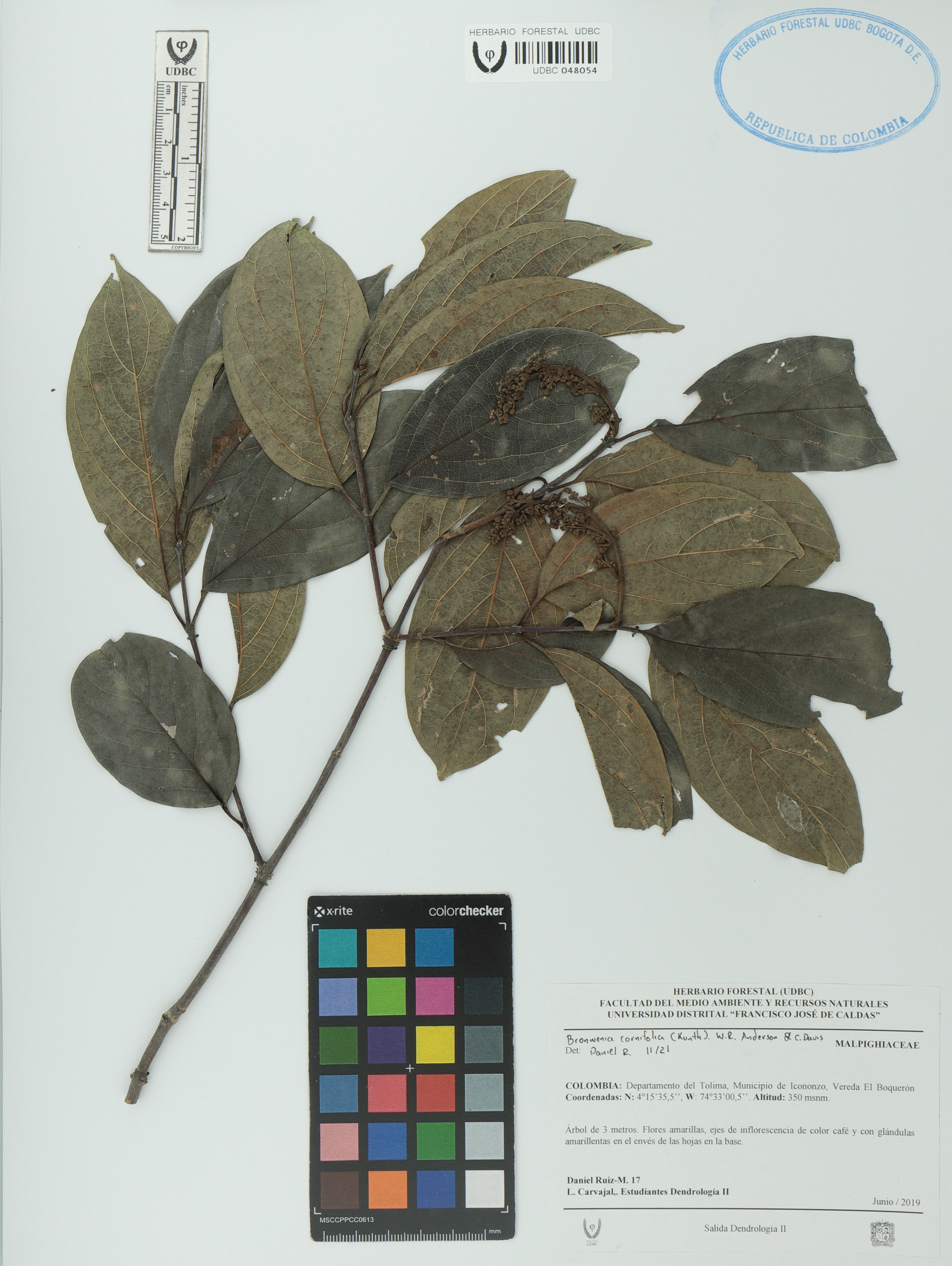 Fotografía del ejemplar Ruiz, D. 17, determinado como Bronwenia cornifolia en el año 2021