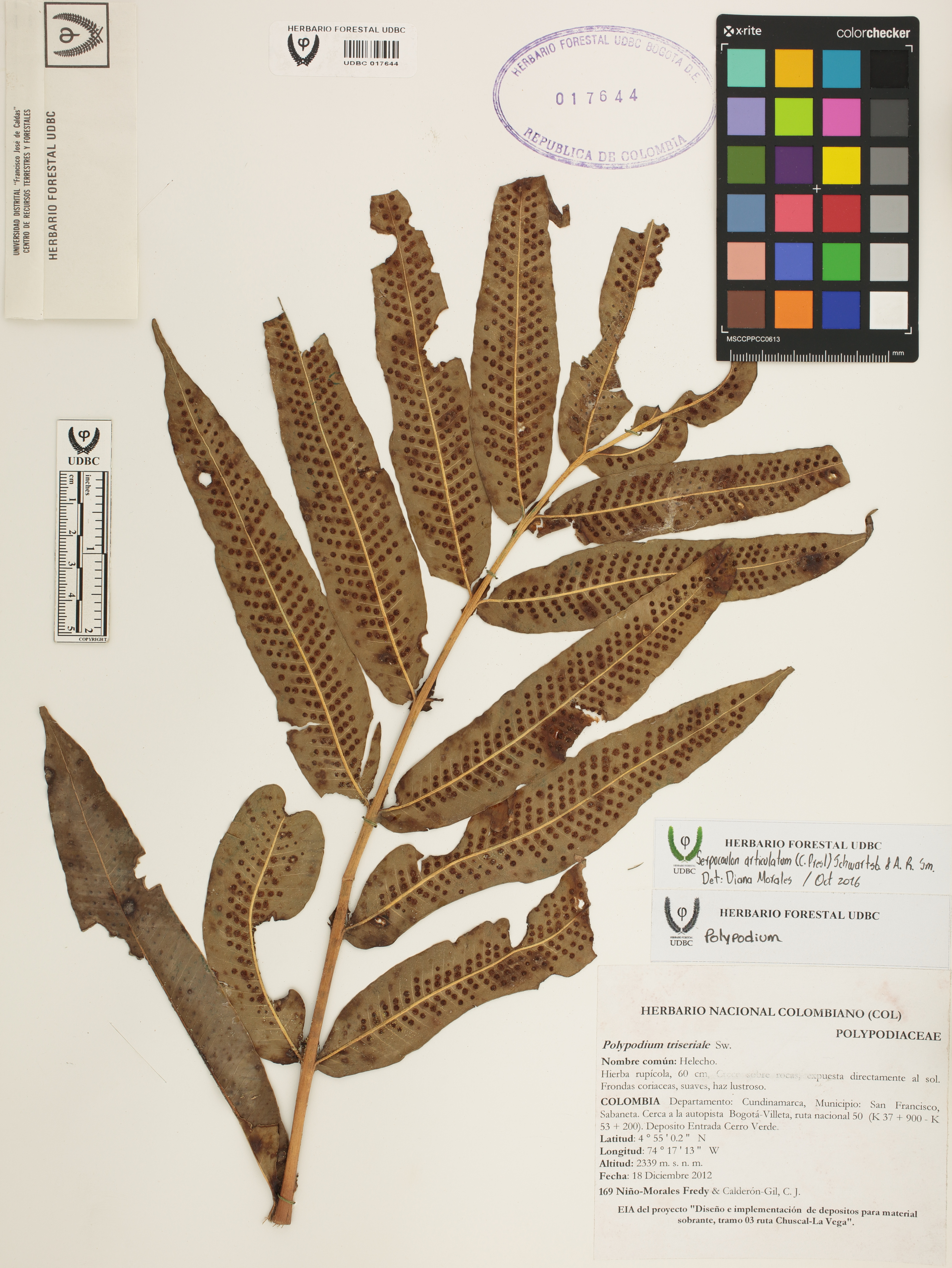 | dc.description | Fotografía del ejemplar Niño-Morales, F. 169, determinado como Serpocaulon articulatum en el año 2016 | |