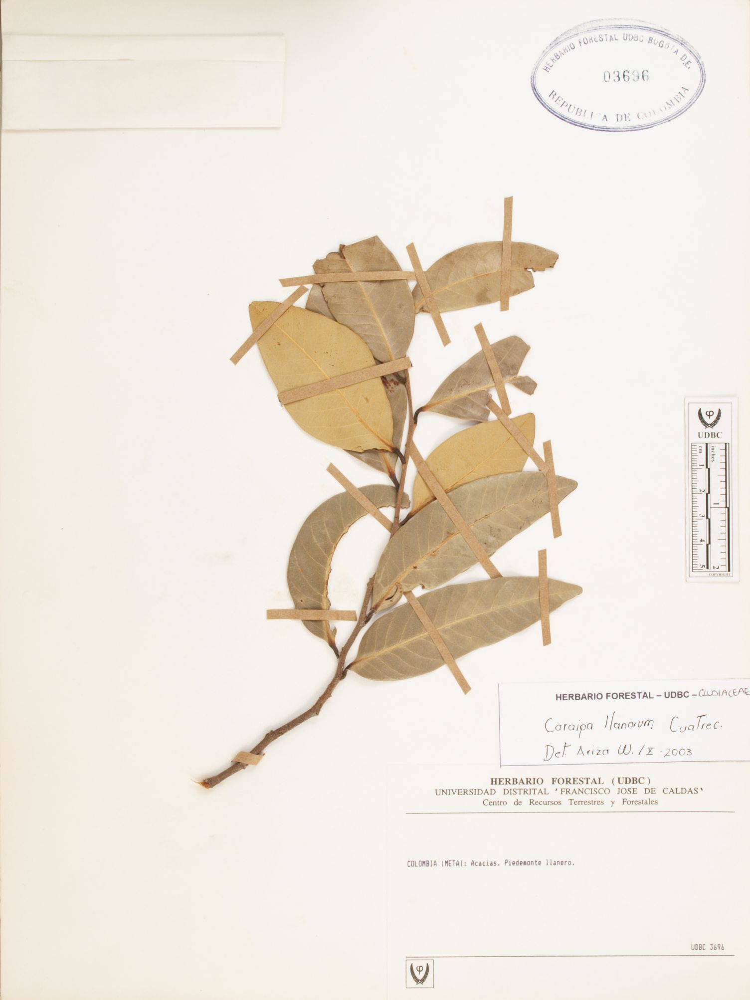 Fotografía del ejemplar SD, determinado como Caraipa llanorum en el año 2003