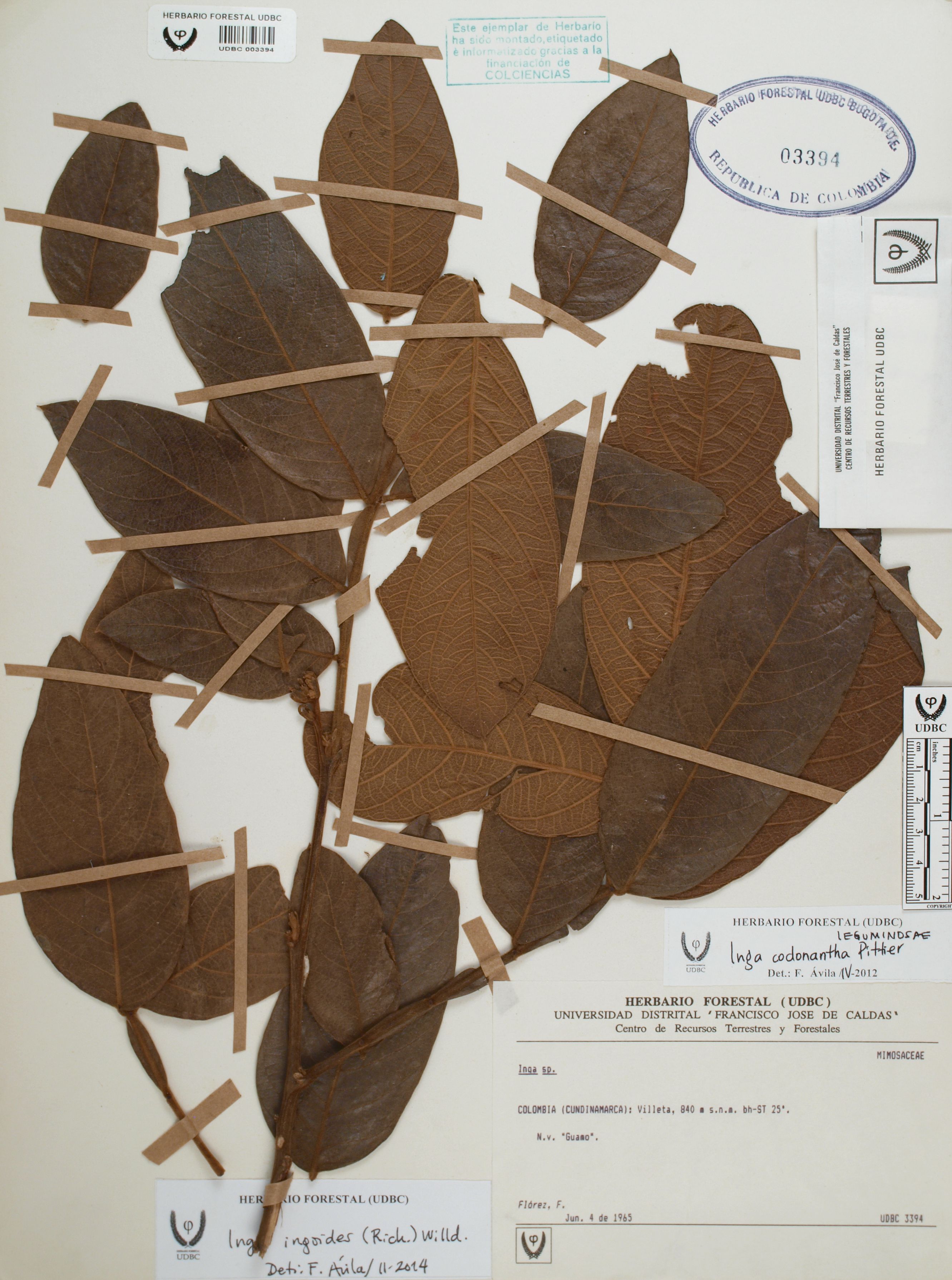 Fotografía del ejemplar Flórez, F., determinado como Inga ingoides en el año 2012