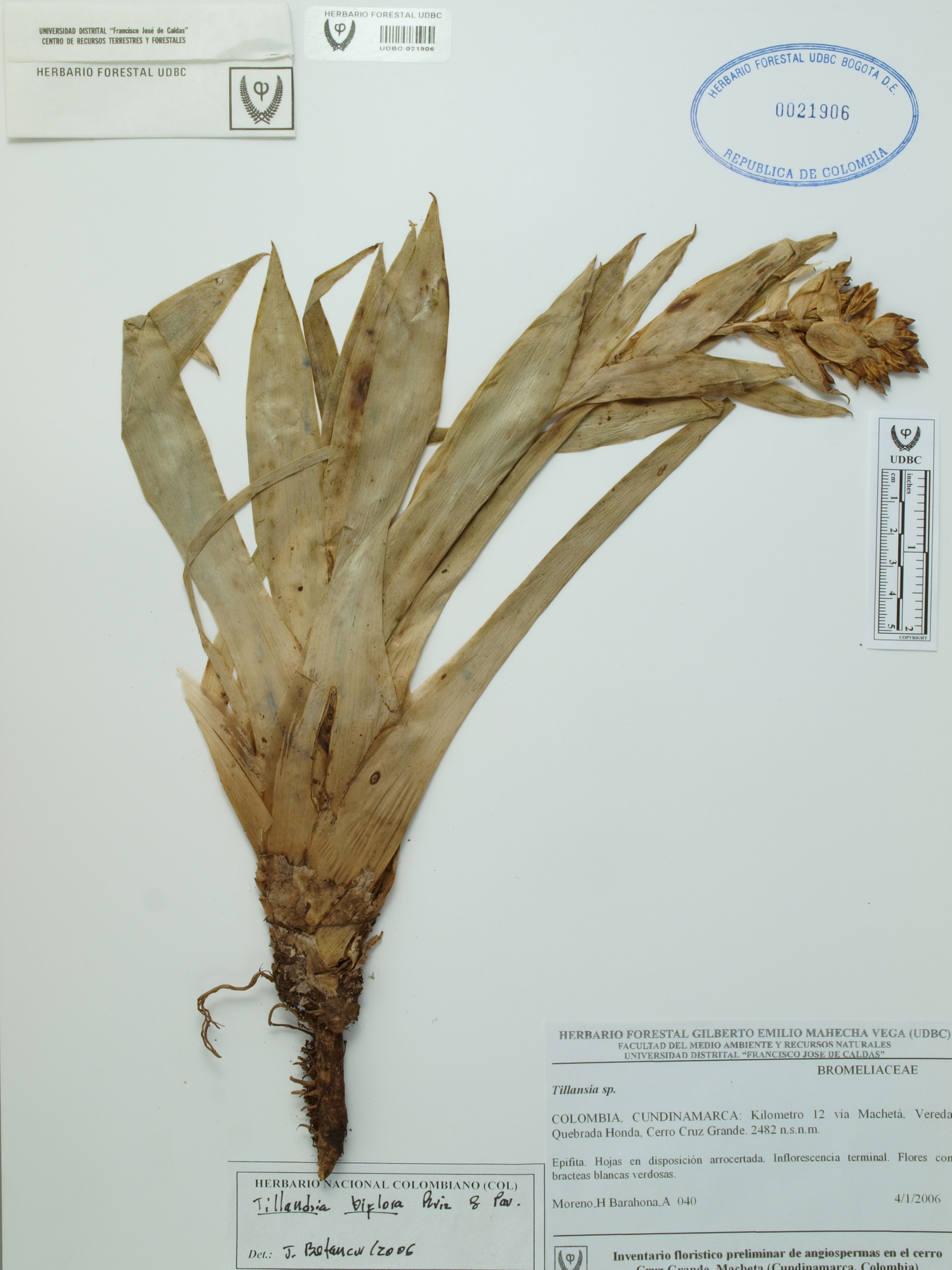 Fotografía del ejemplar Moreno, H. 40, determinado como Tillandsia biflora en el año 2006