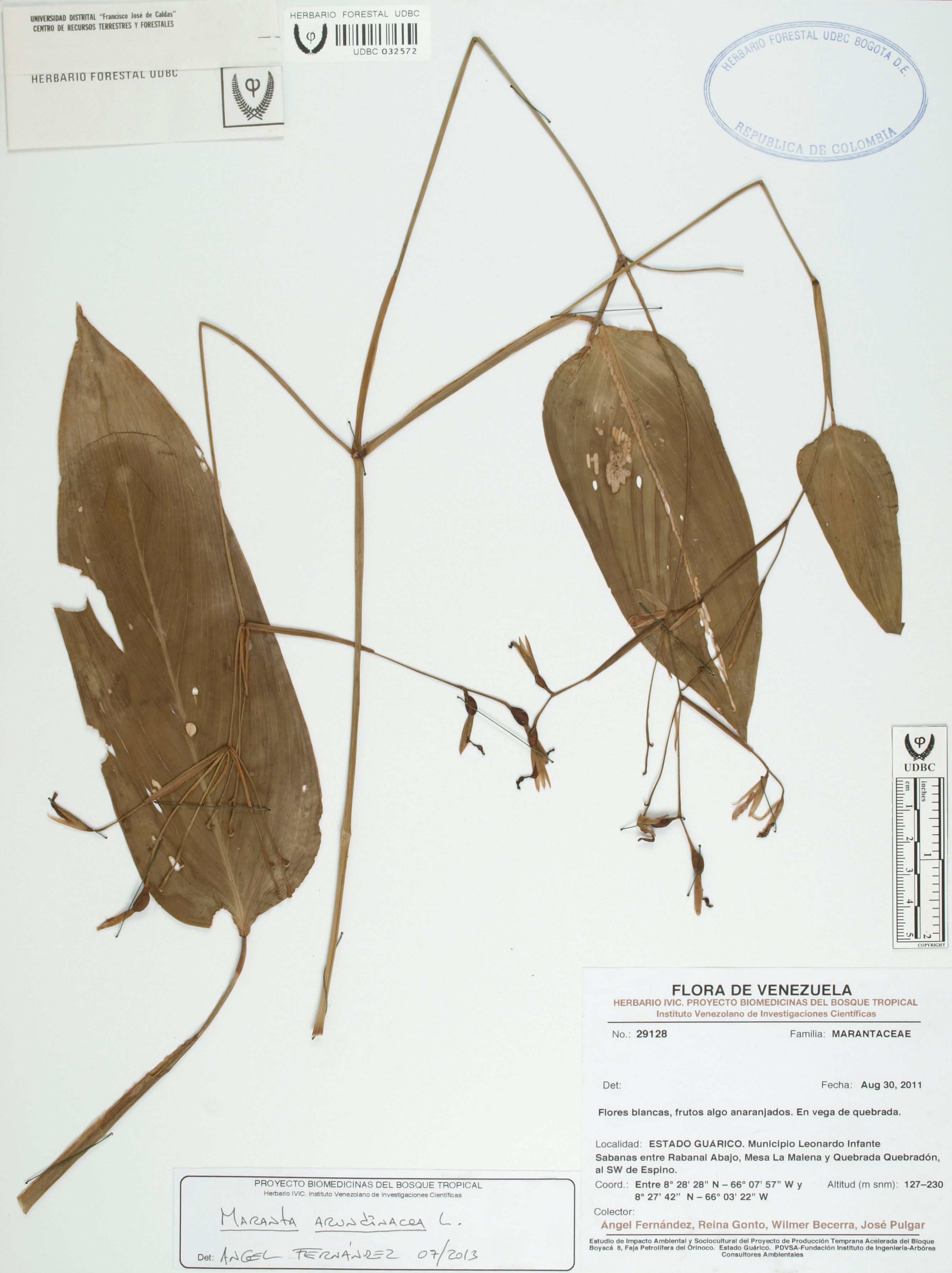 Fotografía del ejemplar Fernández, A. 29128, determinado como Maranta arundinacea en el año 2013