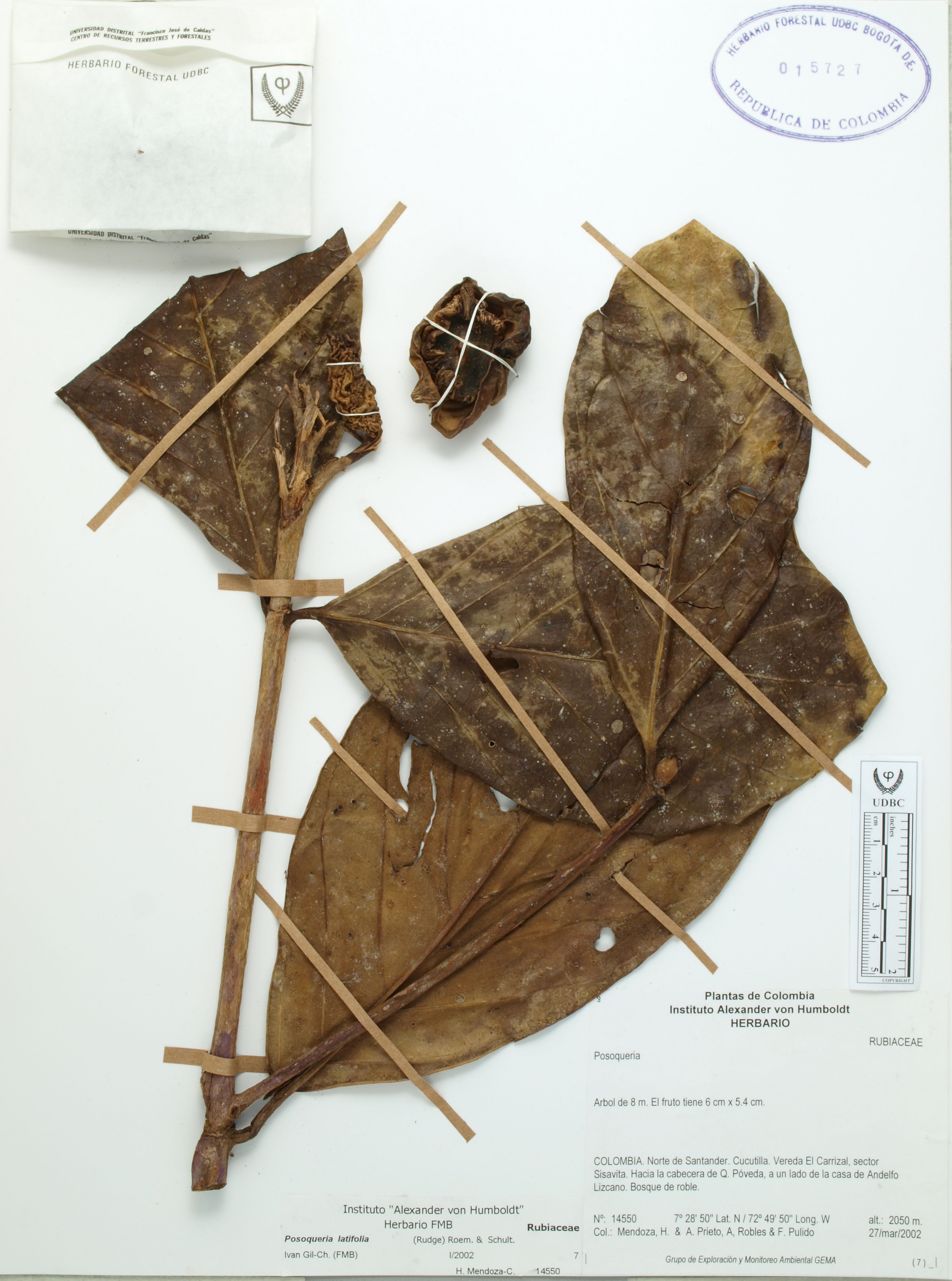 Fotografía del ejemplar Mendoza, H. 14550, determinado como Posoqueria latifolia en el año 2002