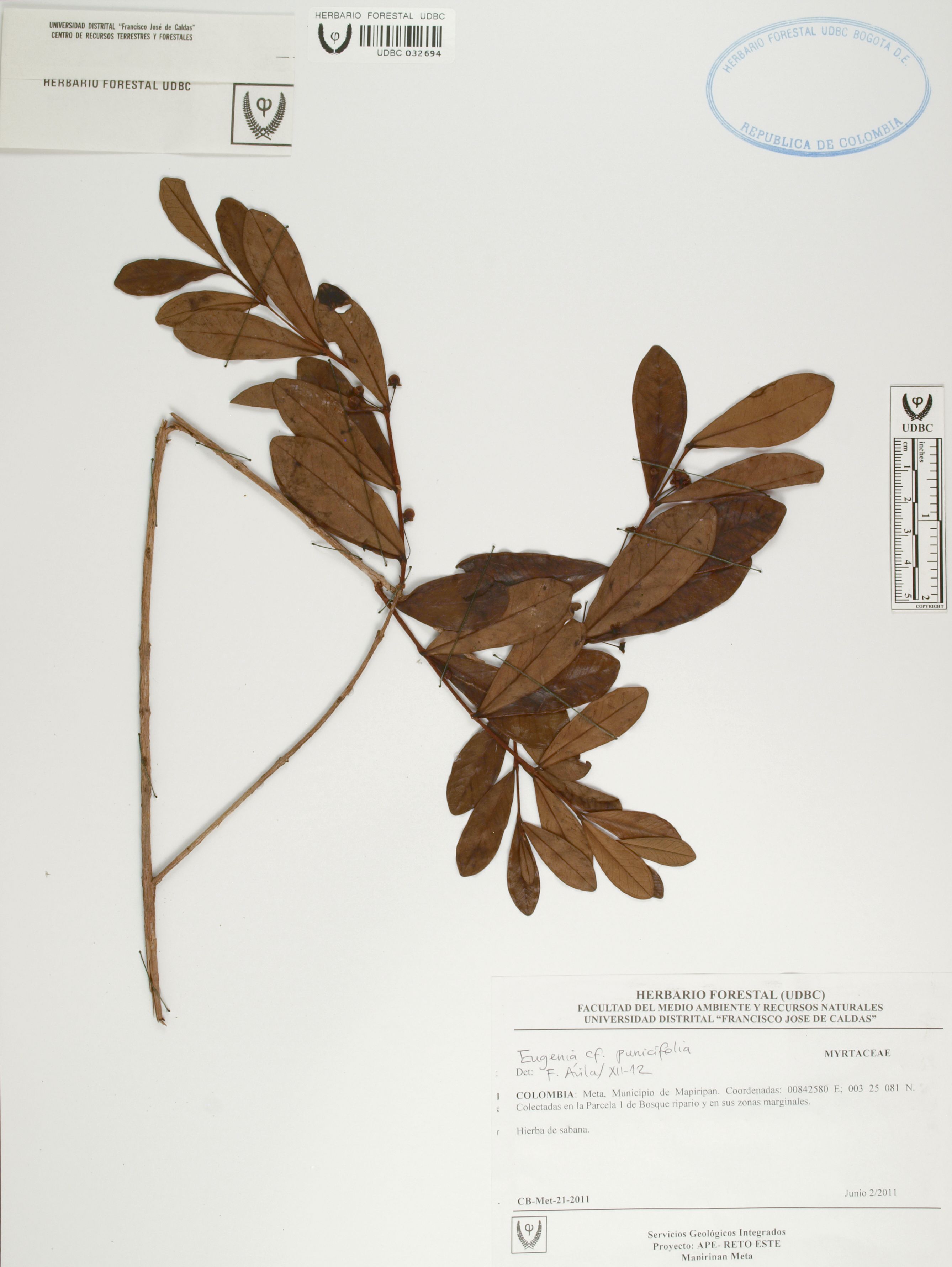 | dc.description | Fotografía del ejemplar SD 21, determinado como Eugenia punicifolia en el año 2012 | |