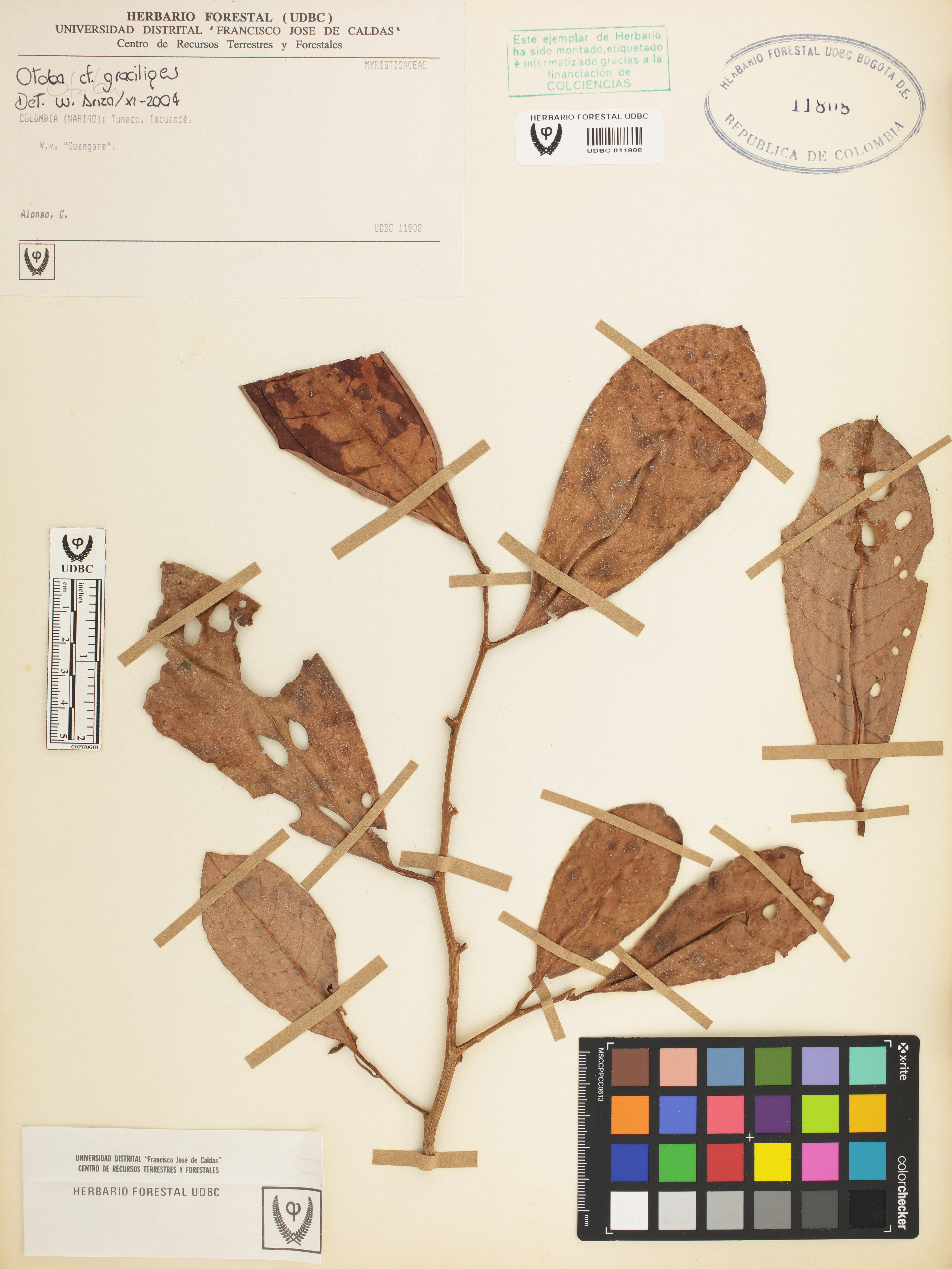 Fotografía del ejemplar Alonso, C., determinado como Otoba gracilipes en el año 2004