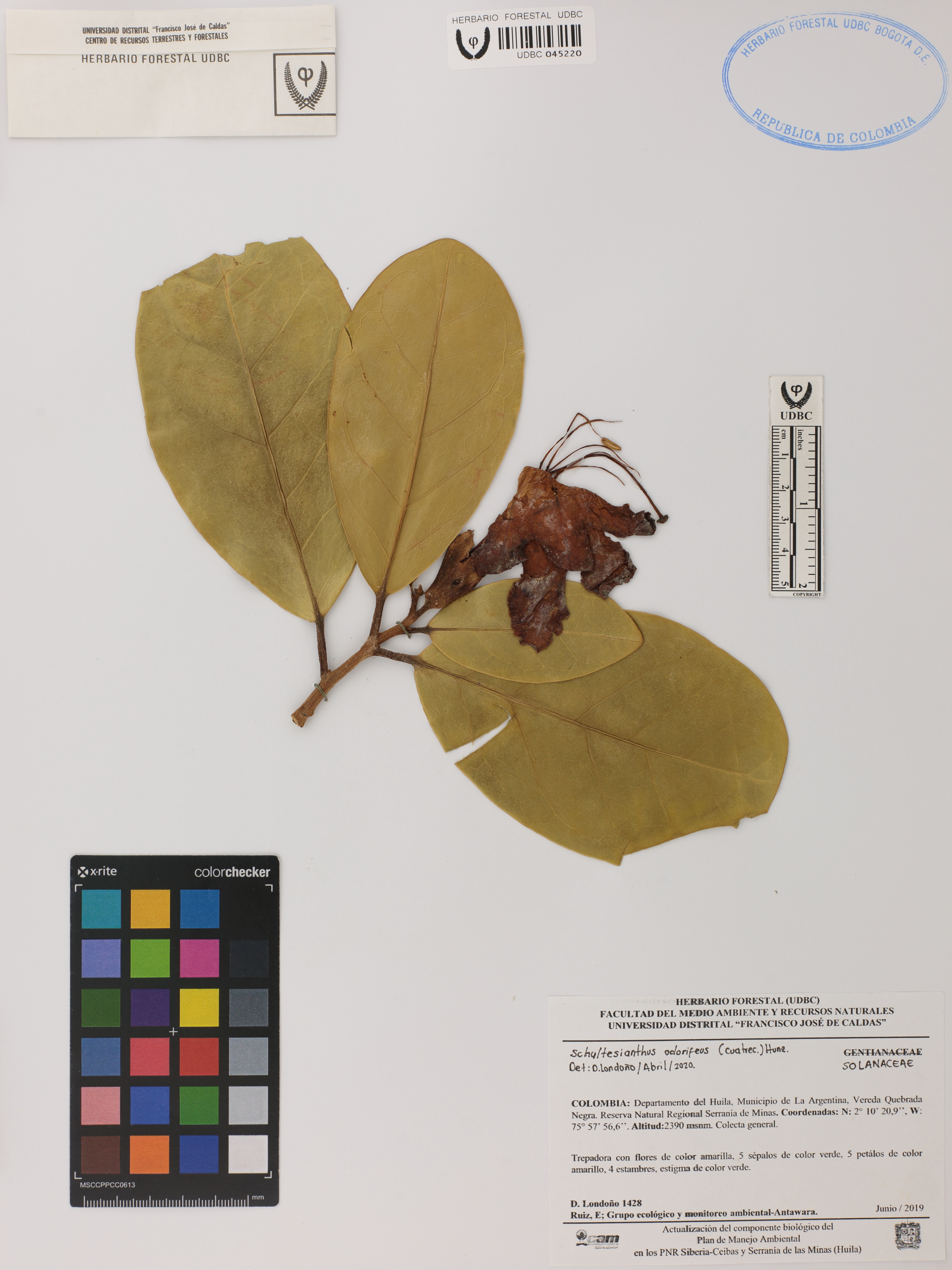 Fotografía del ejemplar Londoño, D. 1428, determinado como Schultesianthus odoriferus en el año 2020