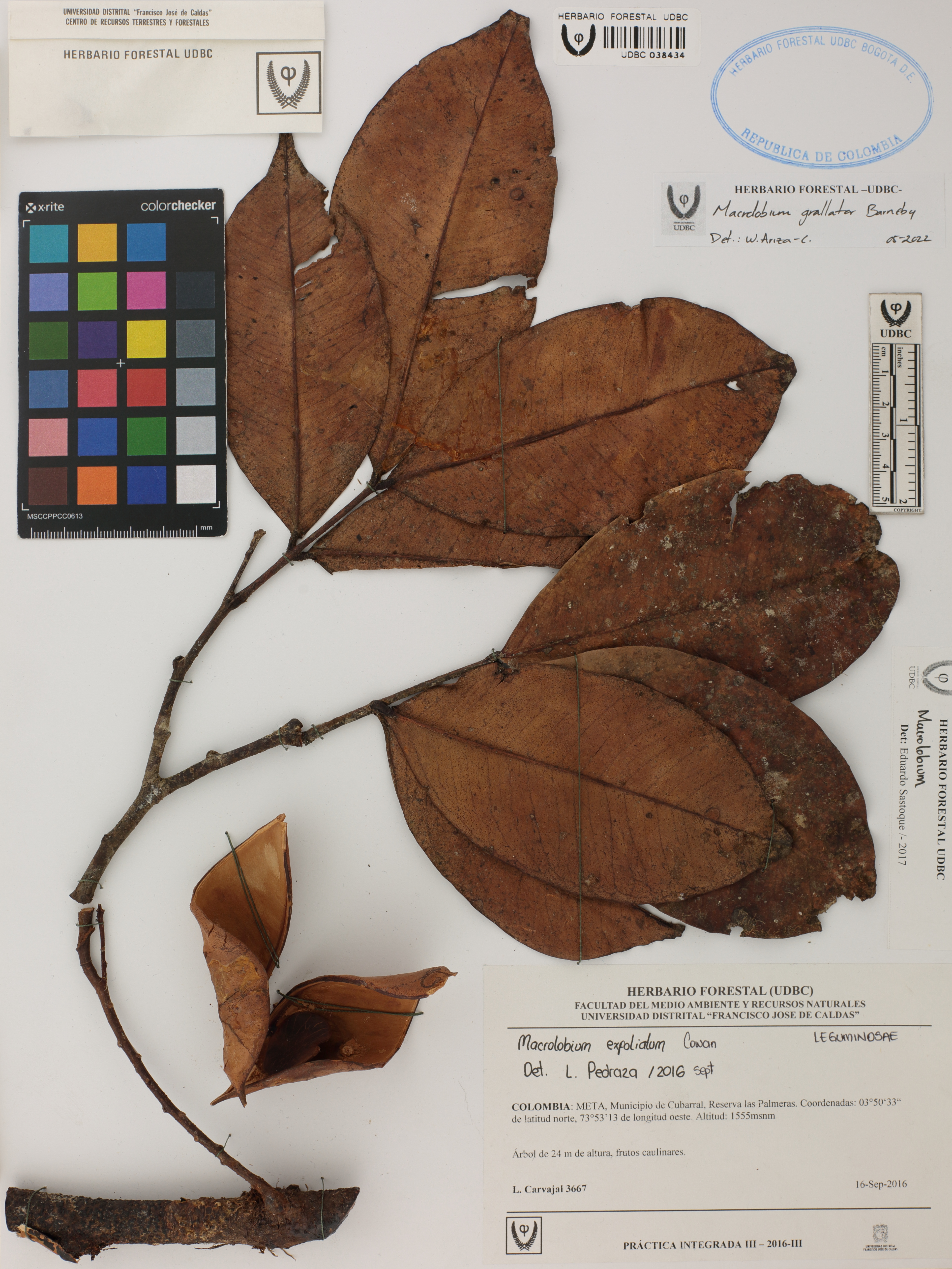 Fotografía del ejemplar Carvajal, L. 3667, determinado como Macrolobium grallator en el año 2022