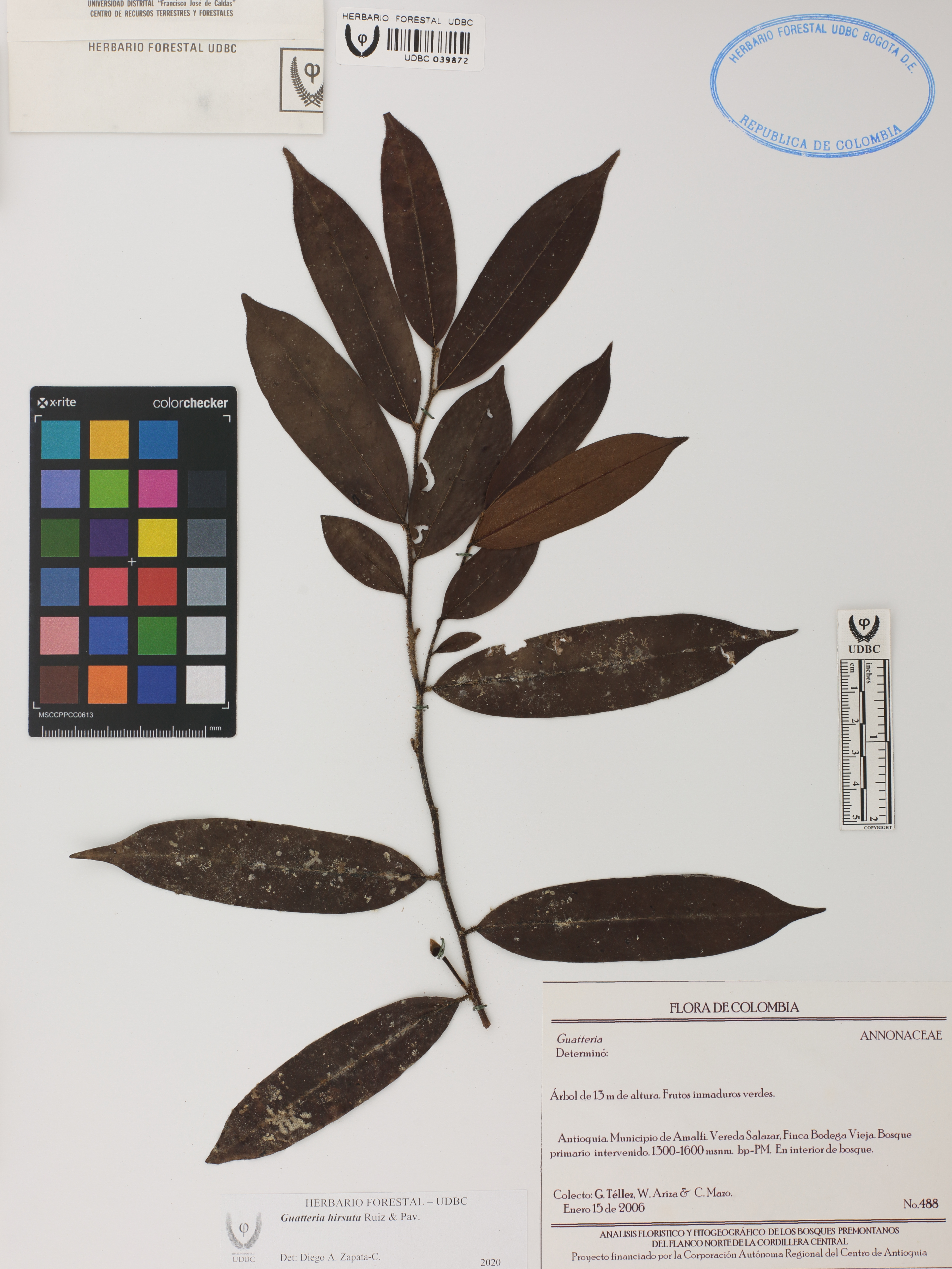 Fotografía del ejemplar Téllez, G. 488, determinado como Guatteria hirsuta en el año 2020