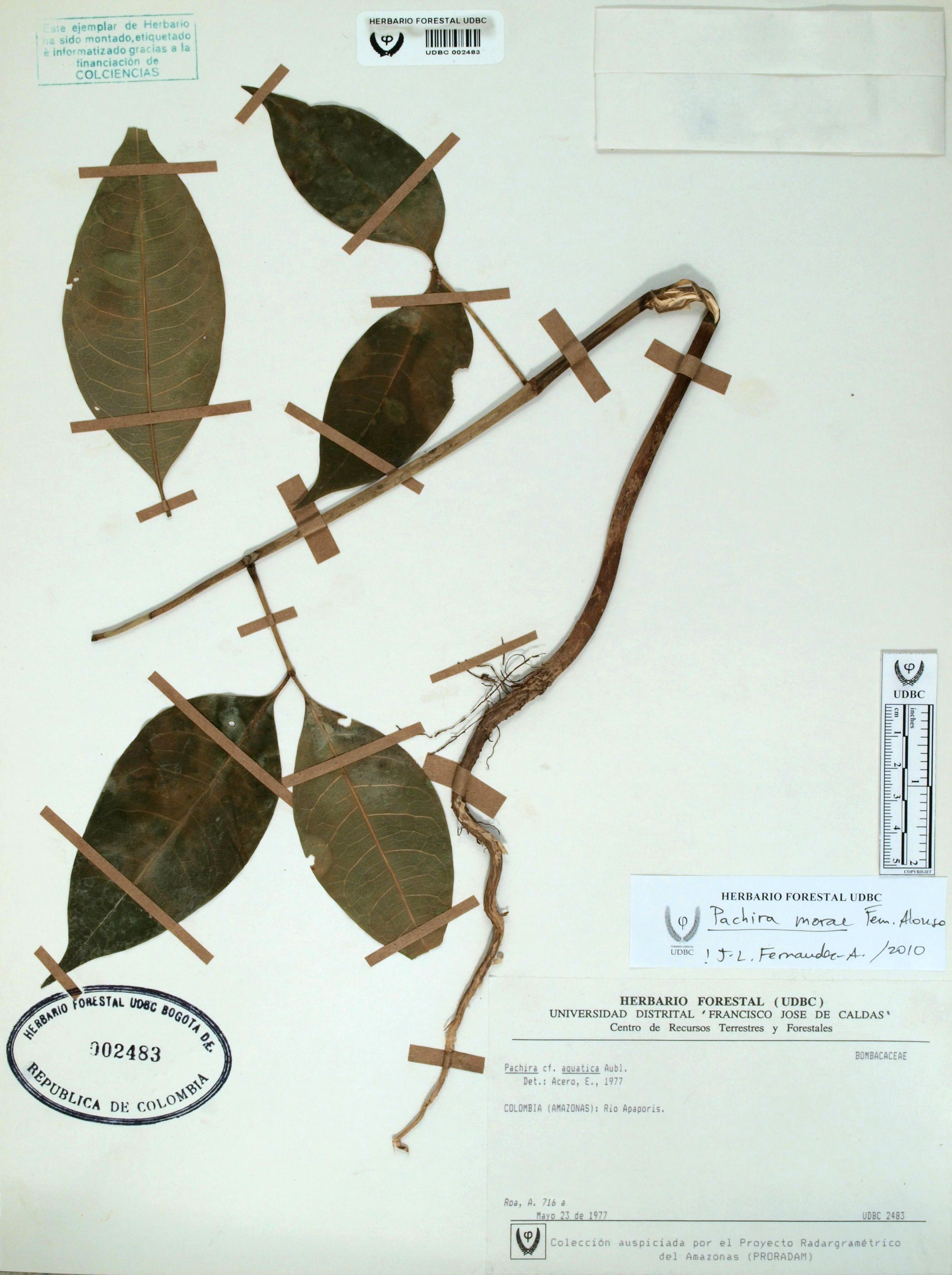 Fotografía del ejemplar Roa, A. 716, determinado como Pachira morae en el año 2010