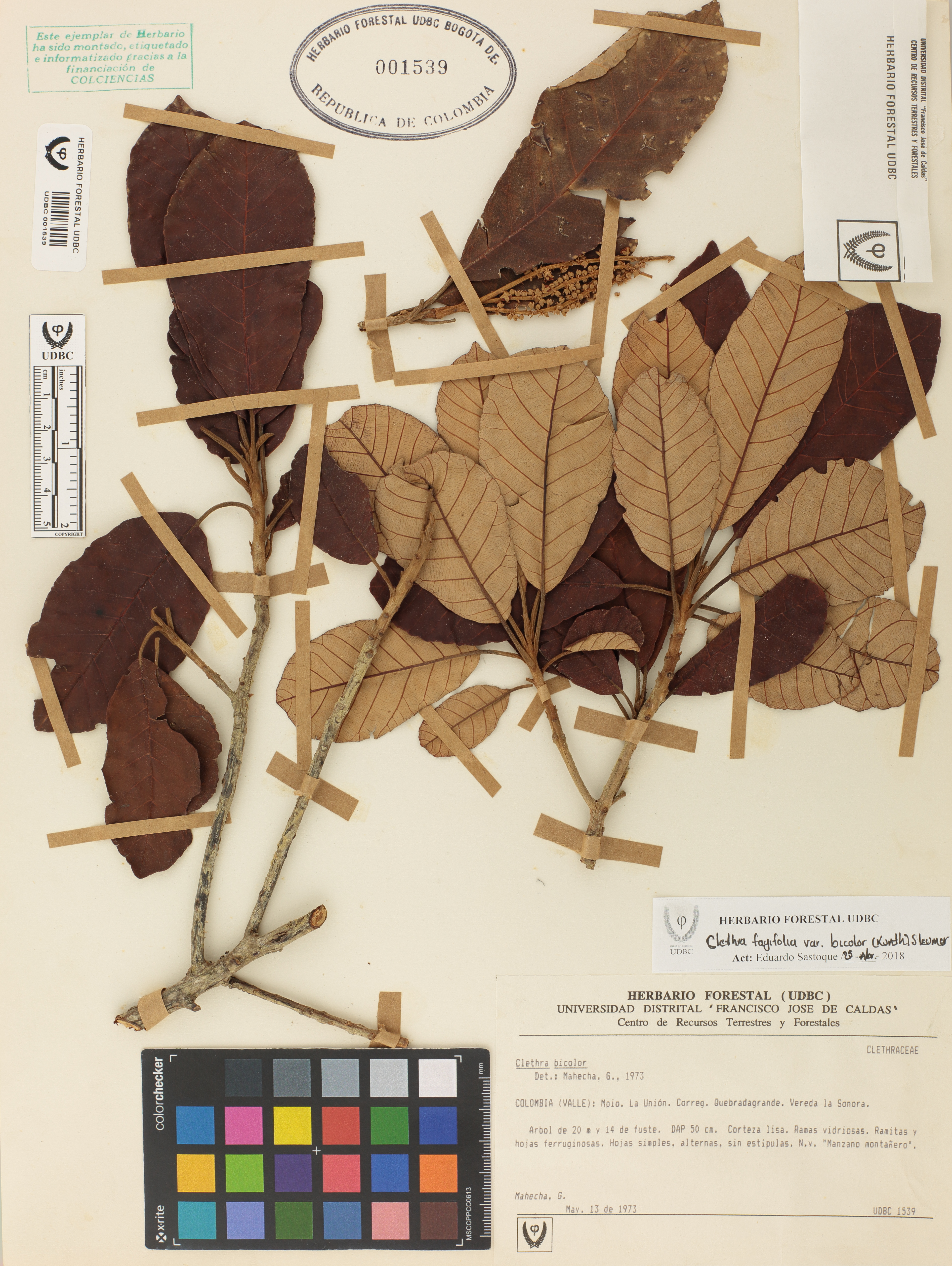 | dc.description | Fotografía del ejemplar Mahecha, G., determinado como Clethra fagifolia var. bicolor en el año 1973 | |