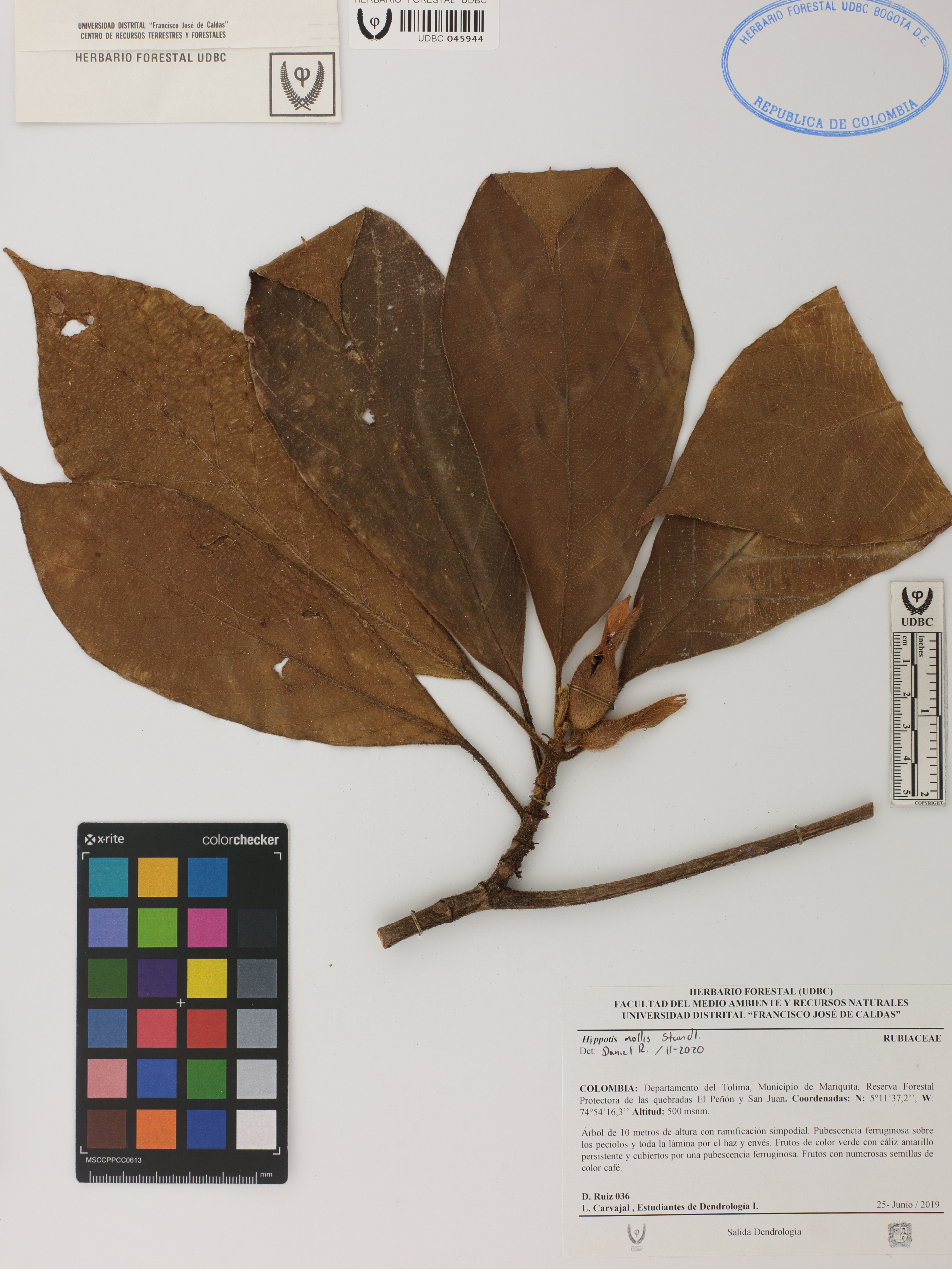 Fotografía del ejemplar Ruiz, D. 36, determinado como Hippotis mollis en el año 2020