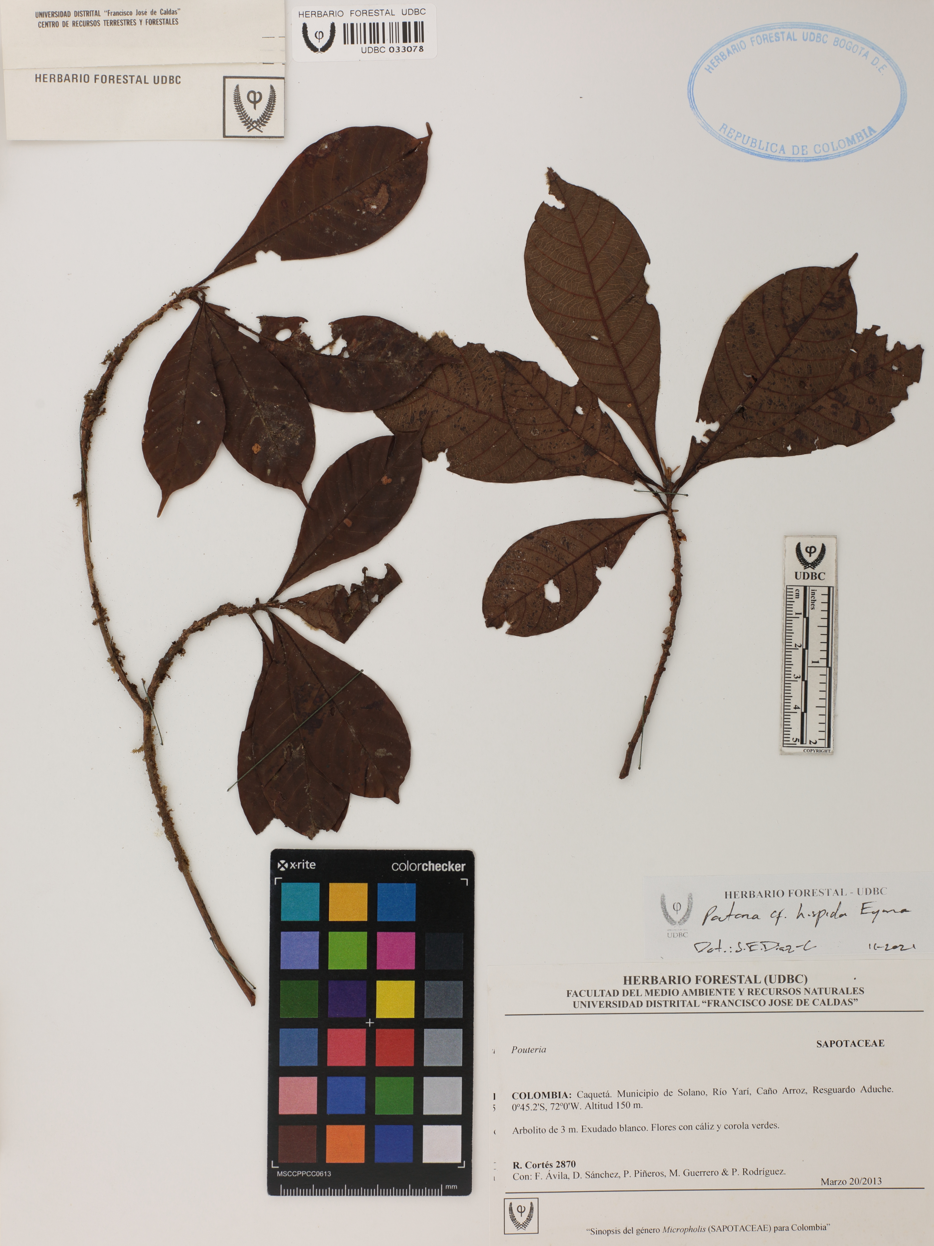 | dc.description | Fotografía del ejemplar Cortés, R. 2870, determinado como Pouteria hispida en el año 2021 | |