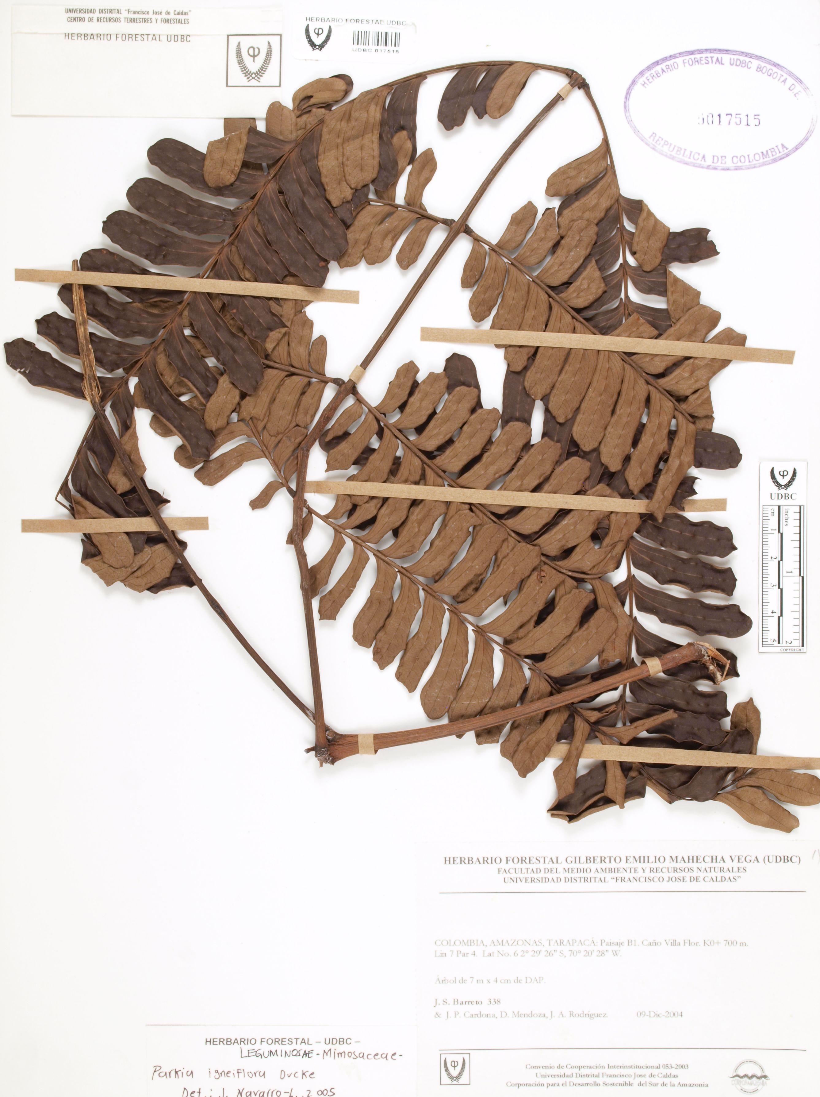 Fotografía del ejemplar Barreto, J. 338, determinado como Parkia igneiflora en el año 2005