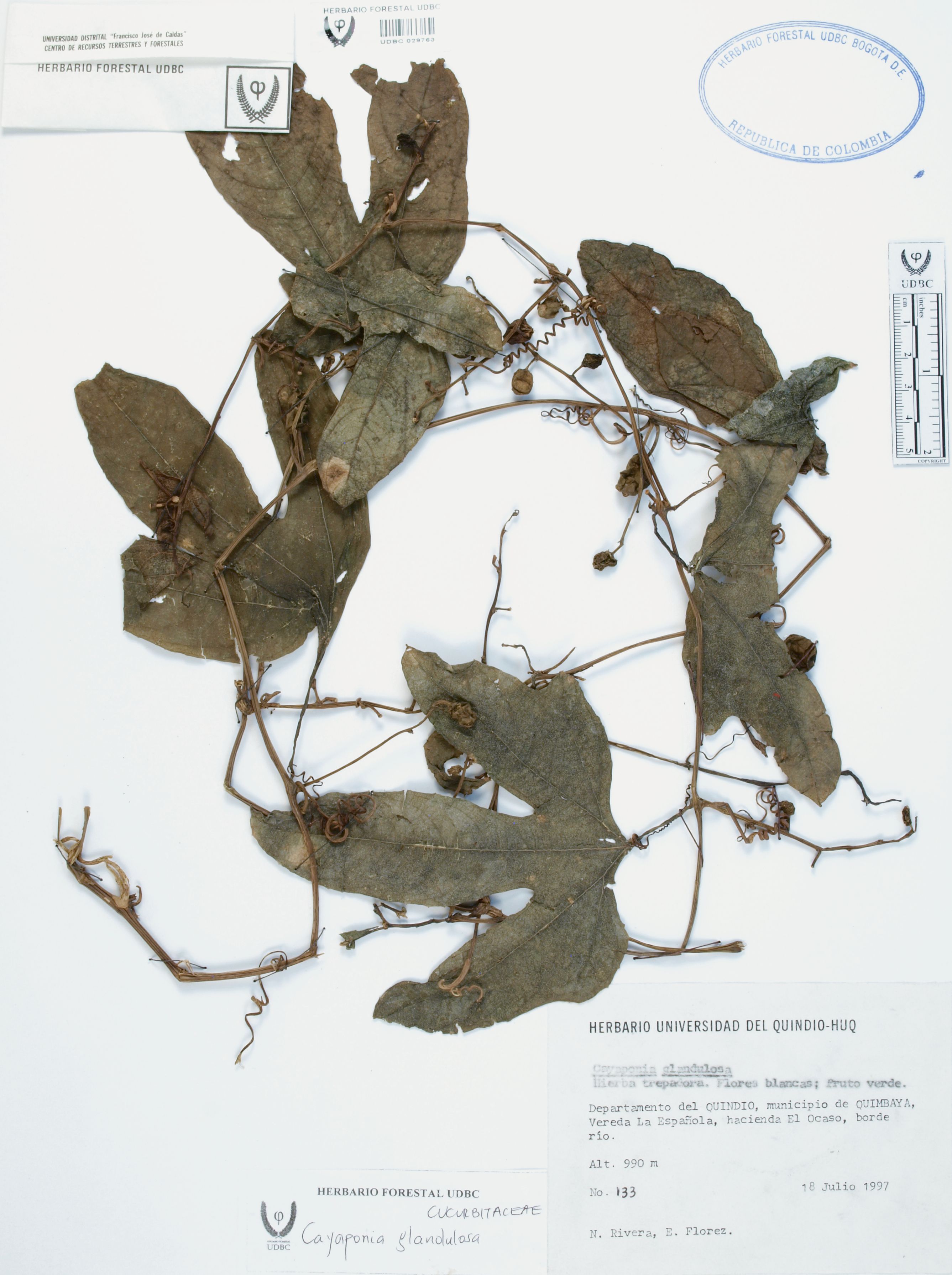 | dc.description | Fotografía del ejemplar Rivera, N. 133, determinado como Cayaponia glandulosa | |
