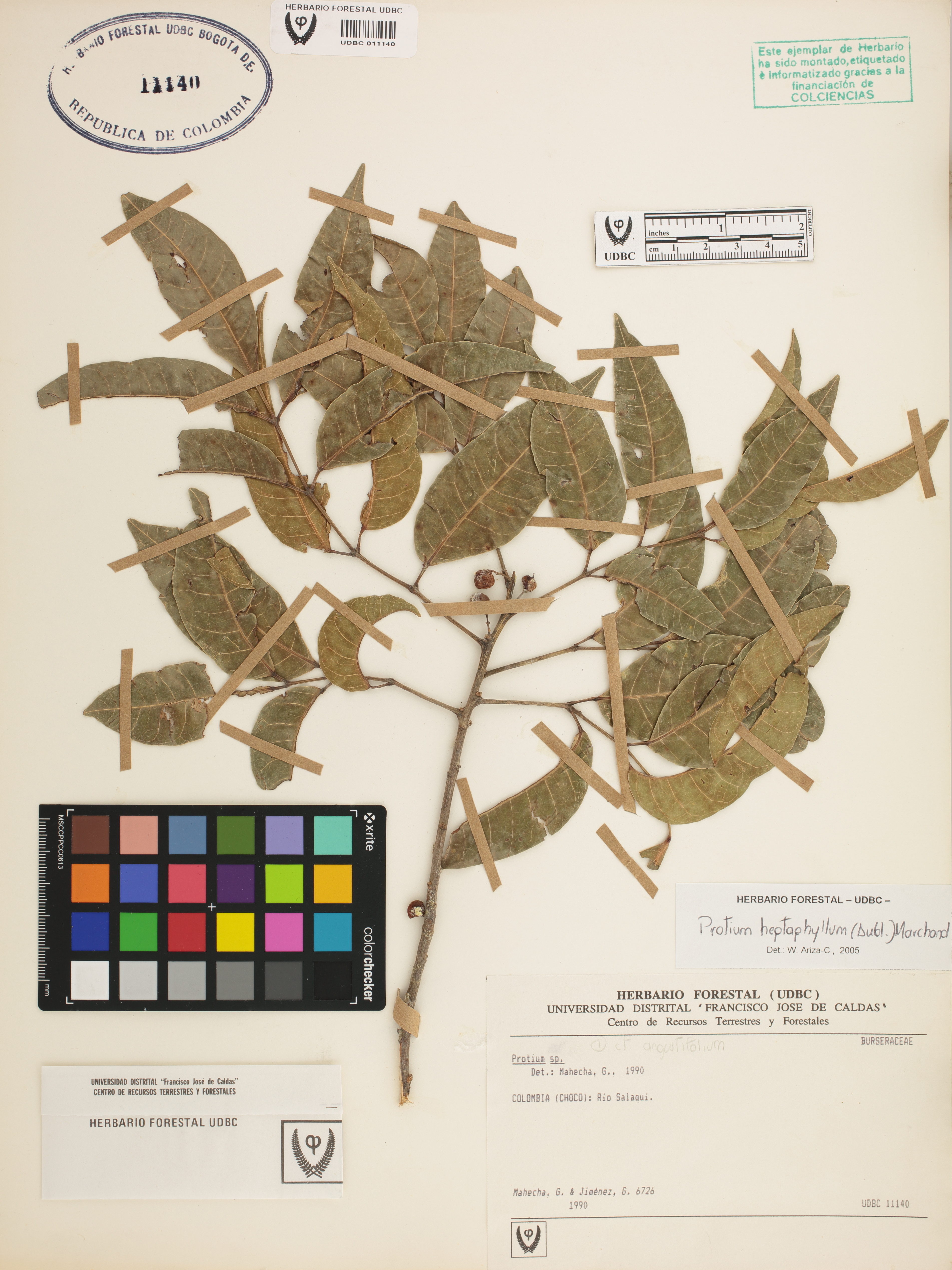 Fotografía del ejemplar Mahecha, G. 6726, determinado como Protium heptaphyllum en el año 2005
