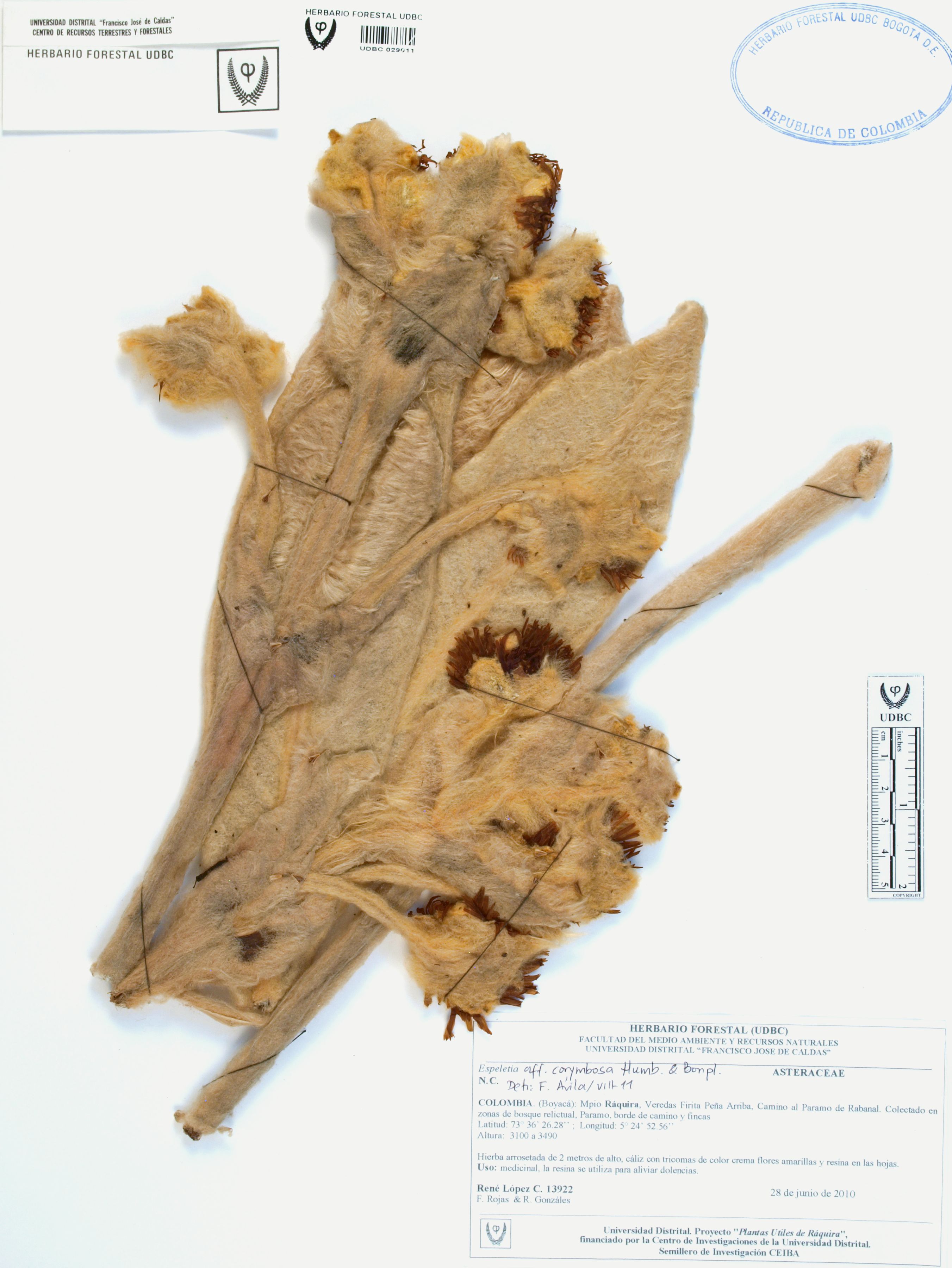Fotografía del ejemplar López, R. 13922, determinado como Espeletia barclayana en el año 2024