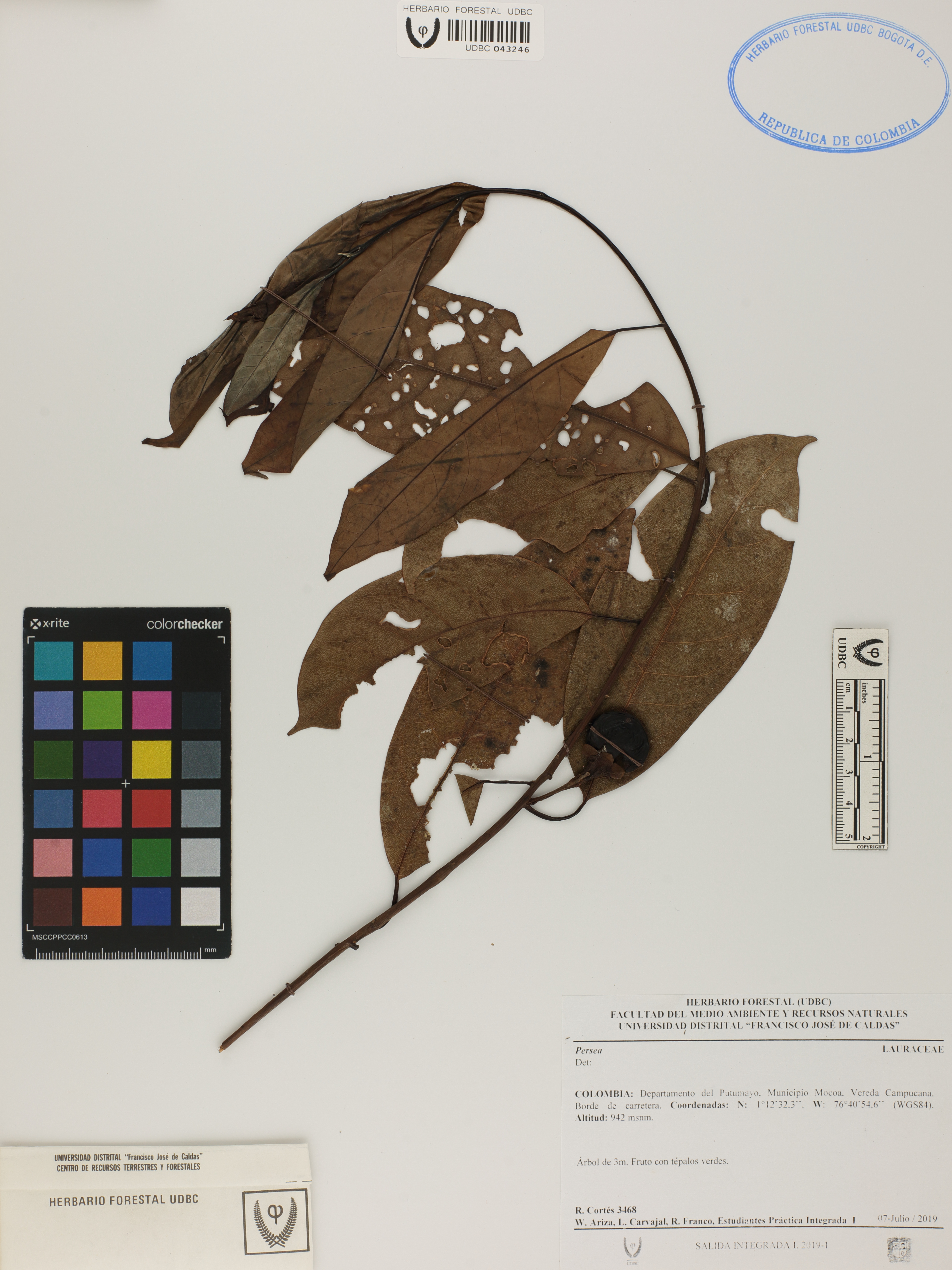 | dc.description | Fotografía del ejemplar Cortés, R. 3468, determinado como Persea sp. | |