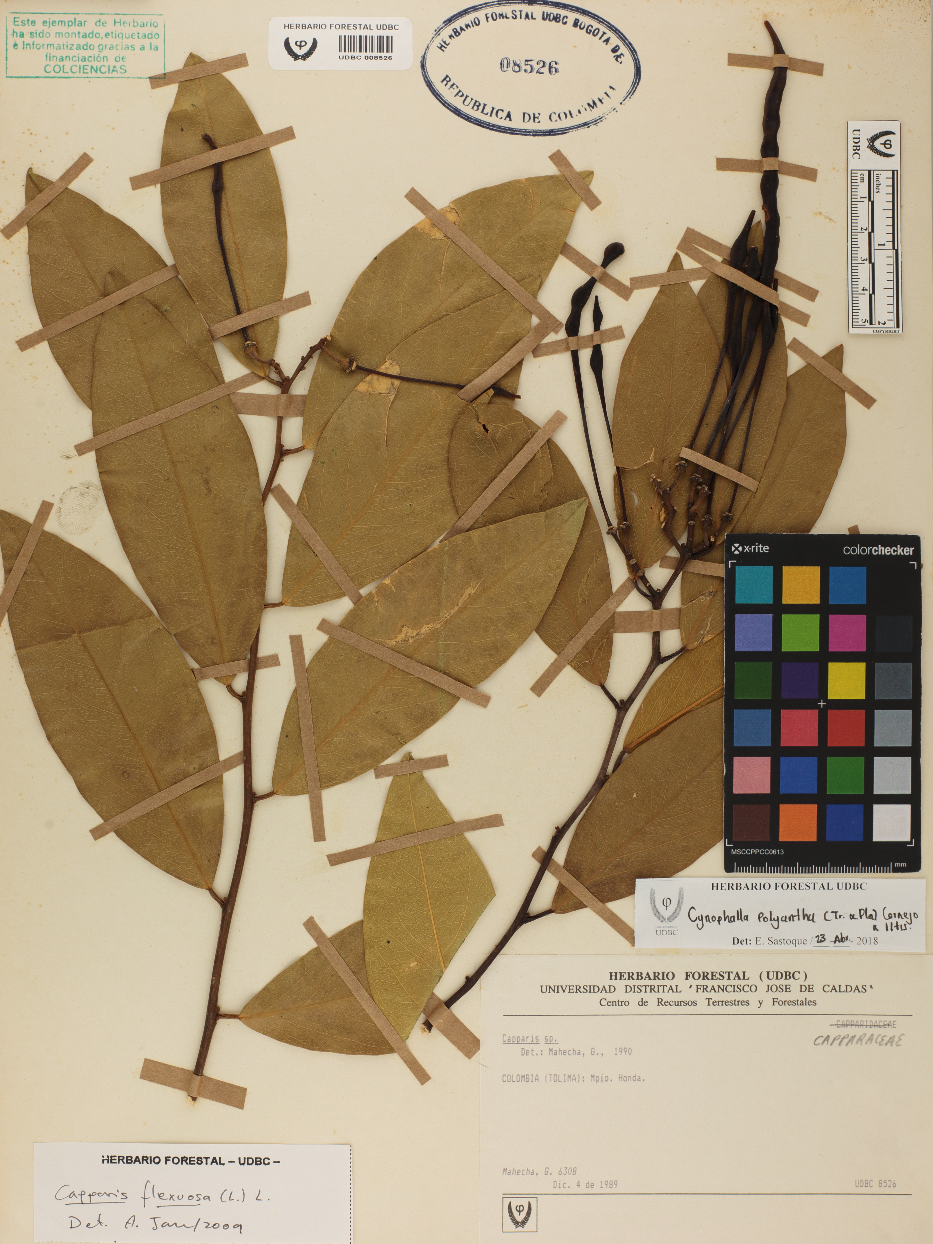 Fotografía del ejemplar Mahecha, G. 6308, determinado como Cynophalla polyantha en el año 2018
