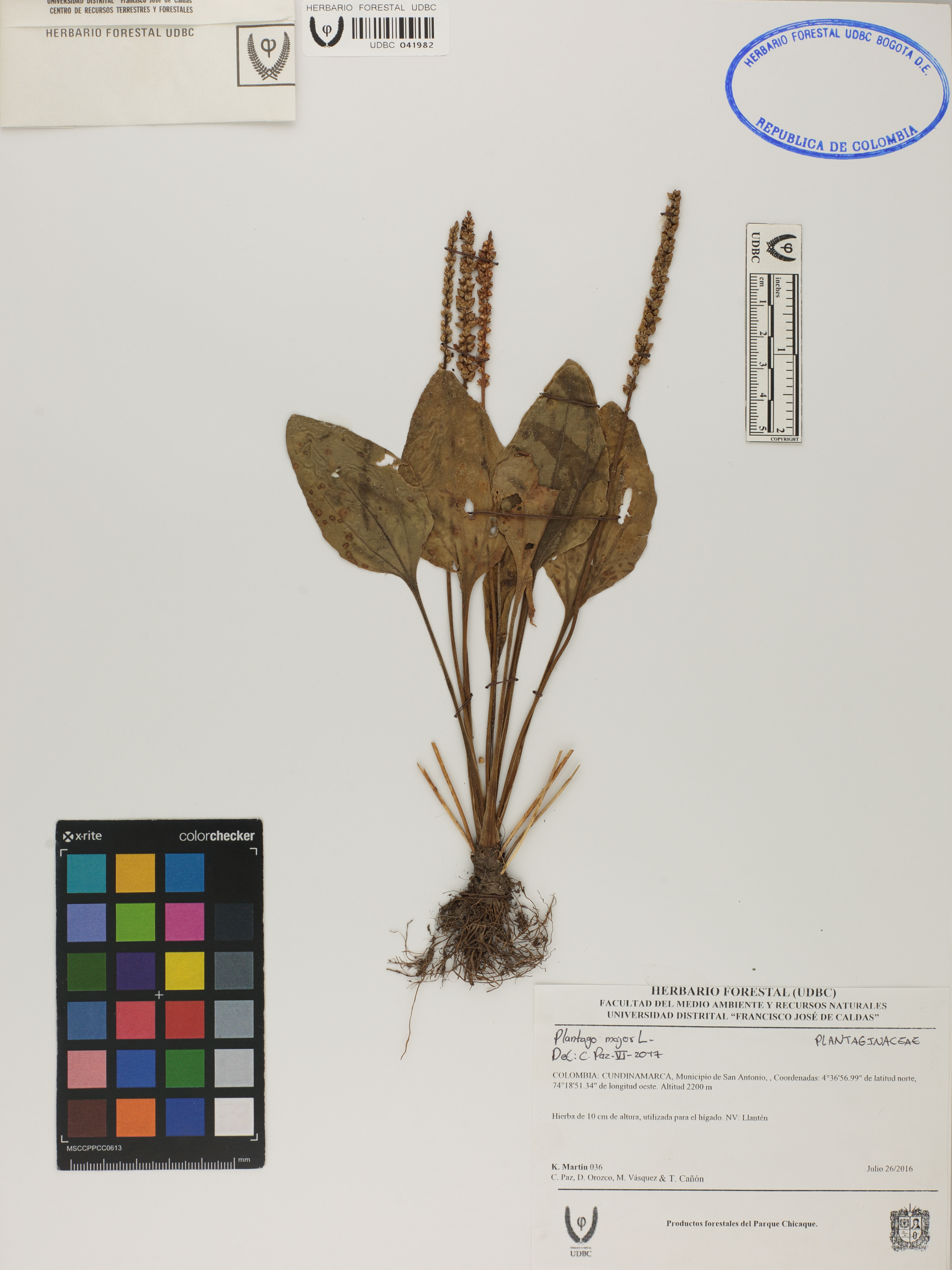 Fotografía del ejemplar Martín, K. 36, determinado como Plantago major en el año 2017