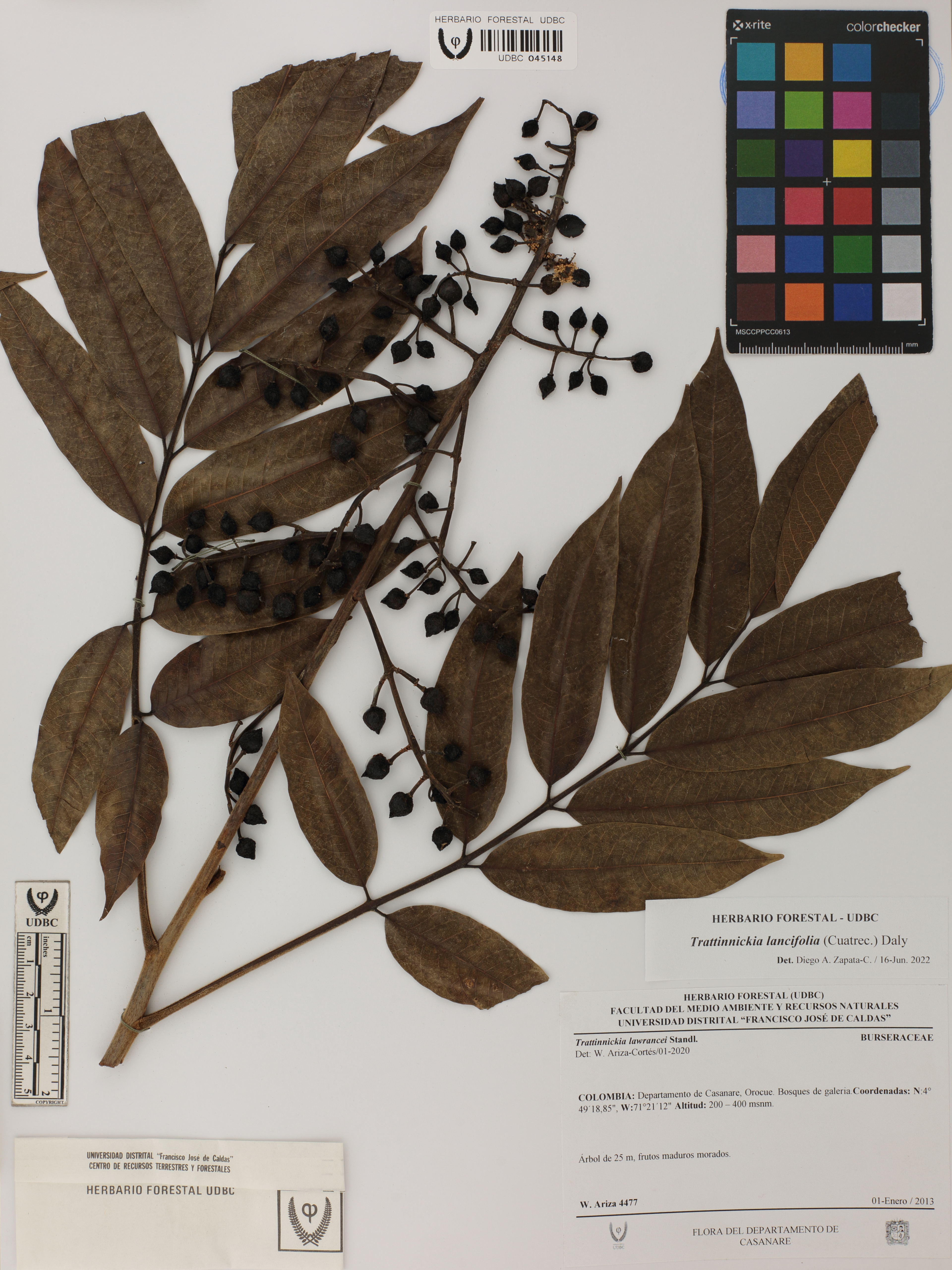 | dc.description | Fotografía del ejemplar Ariza-Cortés, W. 4477, determinado como Trattinnickia lancifolia en el año 2022 | |