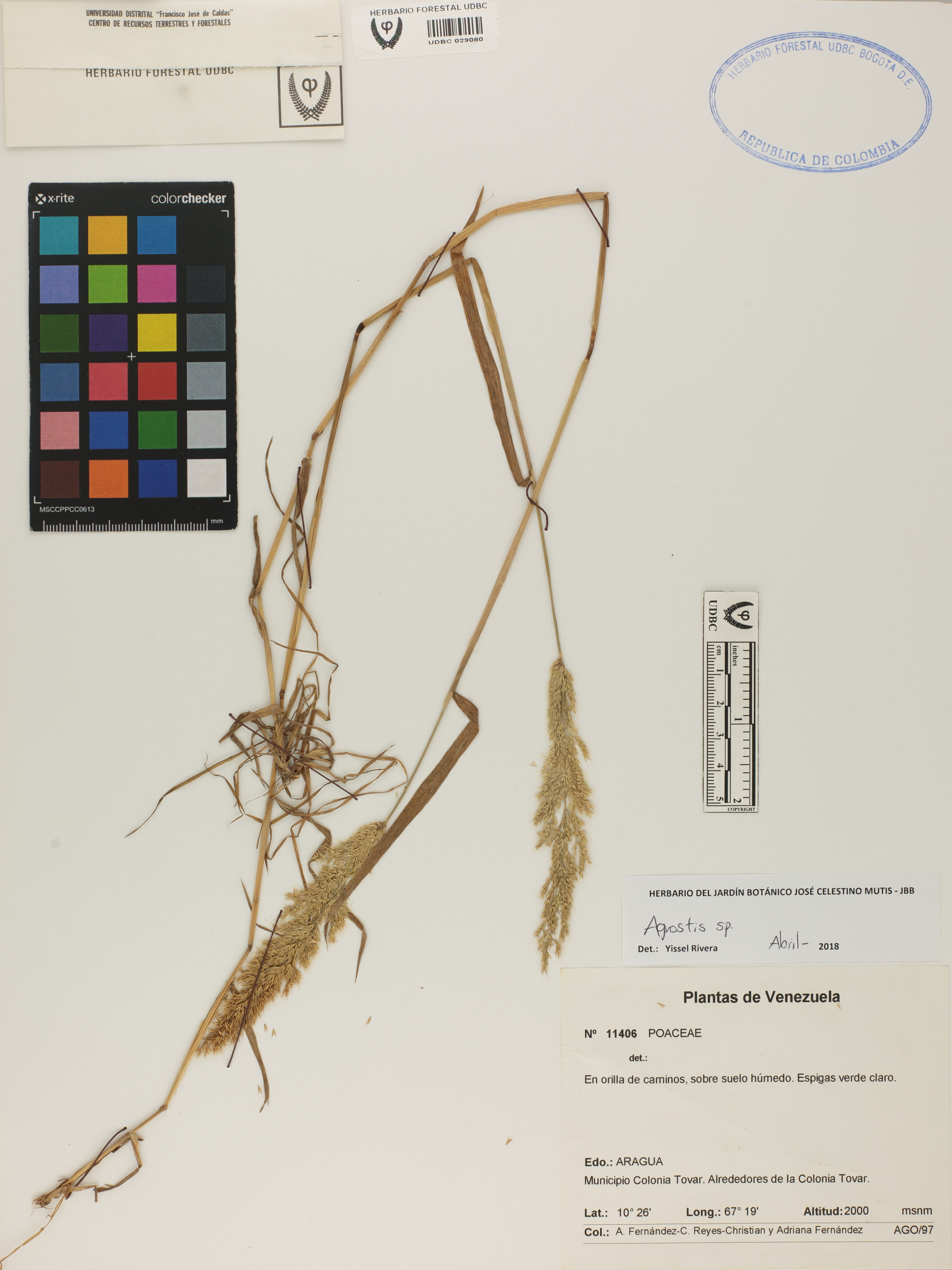 Fotografía del ejemplar Fernández-C., A. 11406, determinado como Agrostis sp. en el año 2018