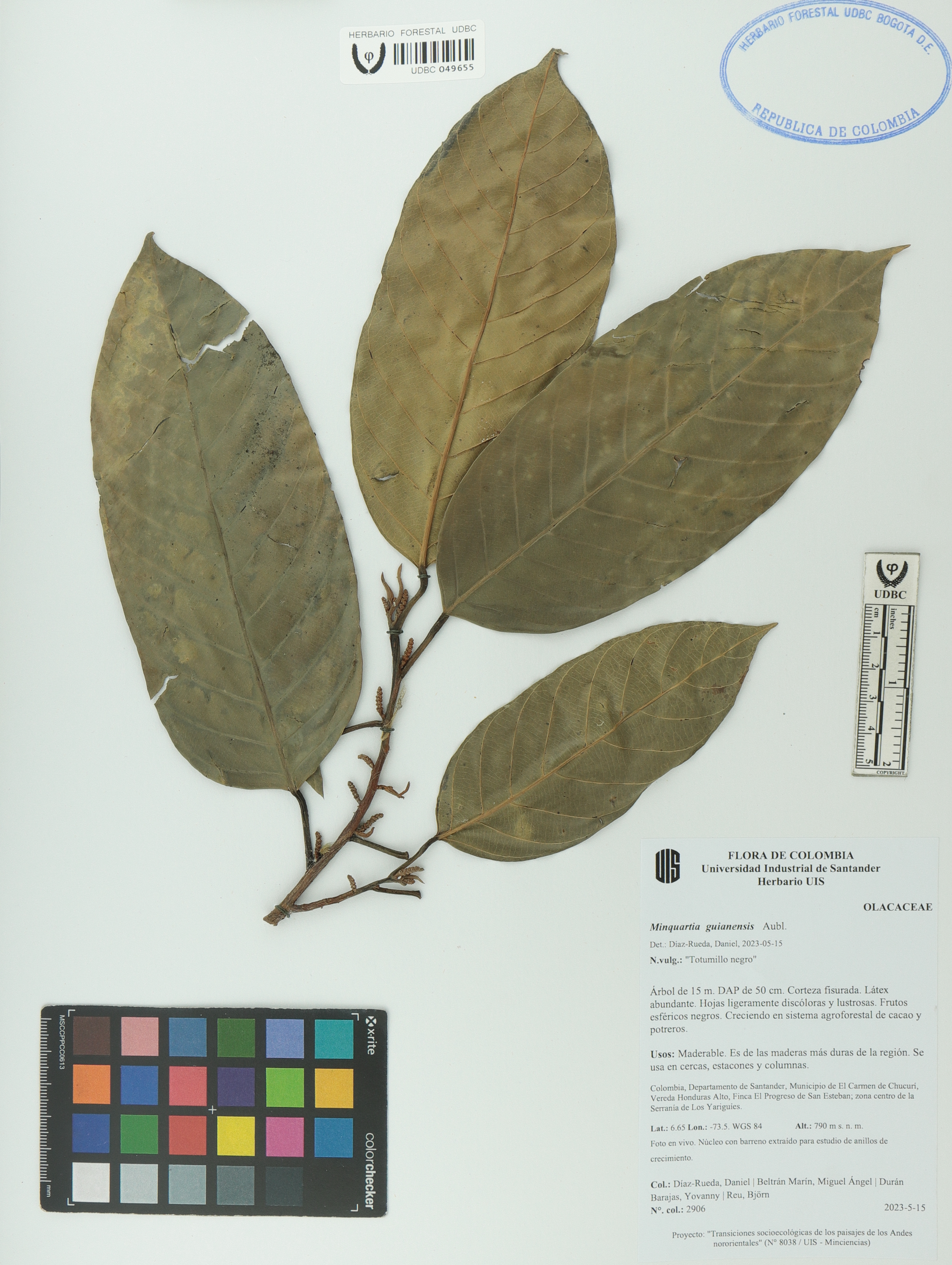 | dc.description | Fotografía del ejemplar Díaz-Rueda, D. 2906, determinado como Minquartia guianensis en el año 2023 | |