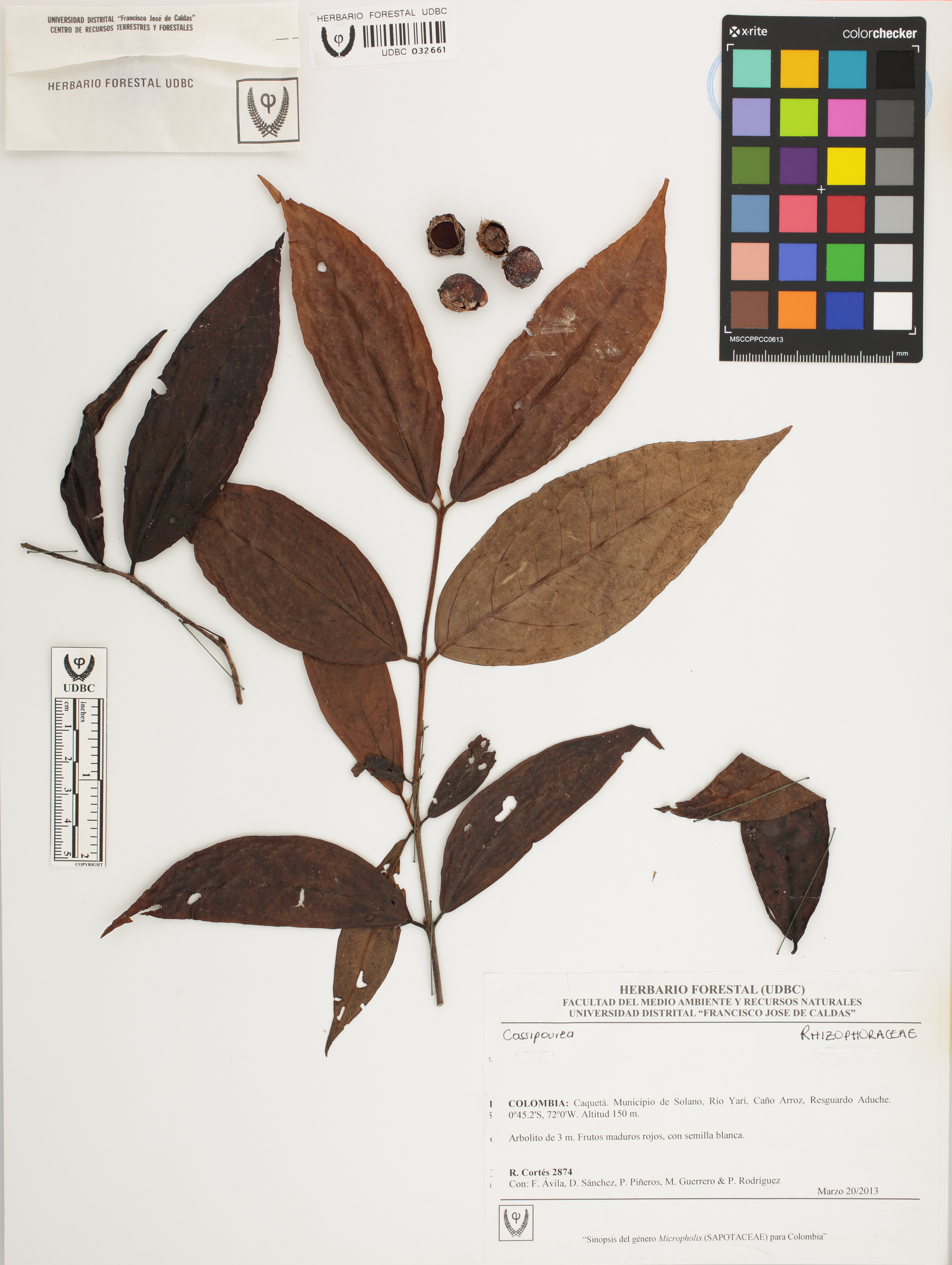 Fotografía del ejemplar Cortés, R. 2874, determinado como Cassipourea sp.