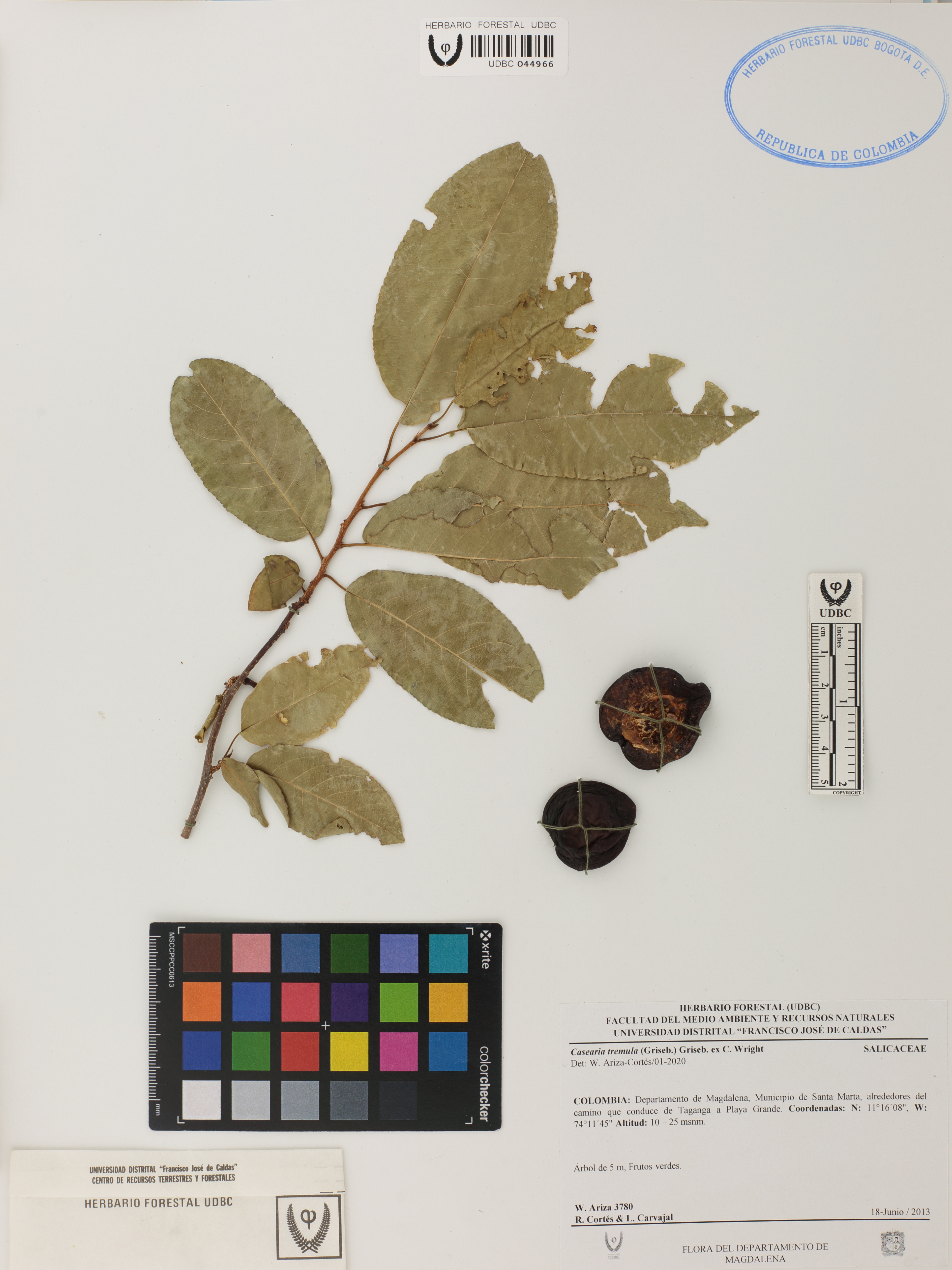Fotografía del ejemplar Ariza, W. 3780, determinado como Casearia tremula en el año 2020