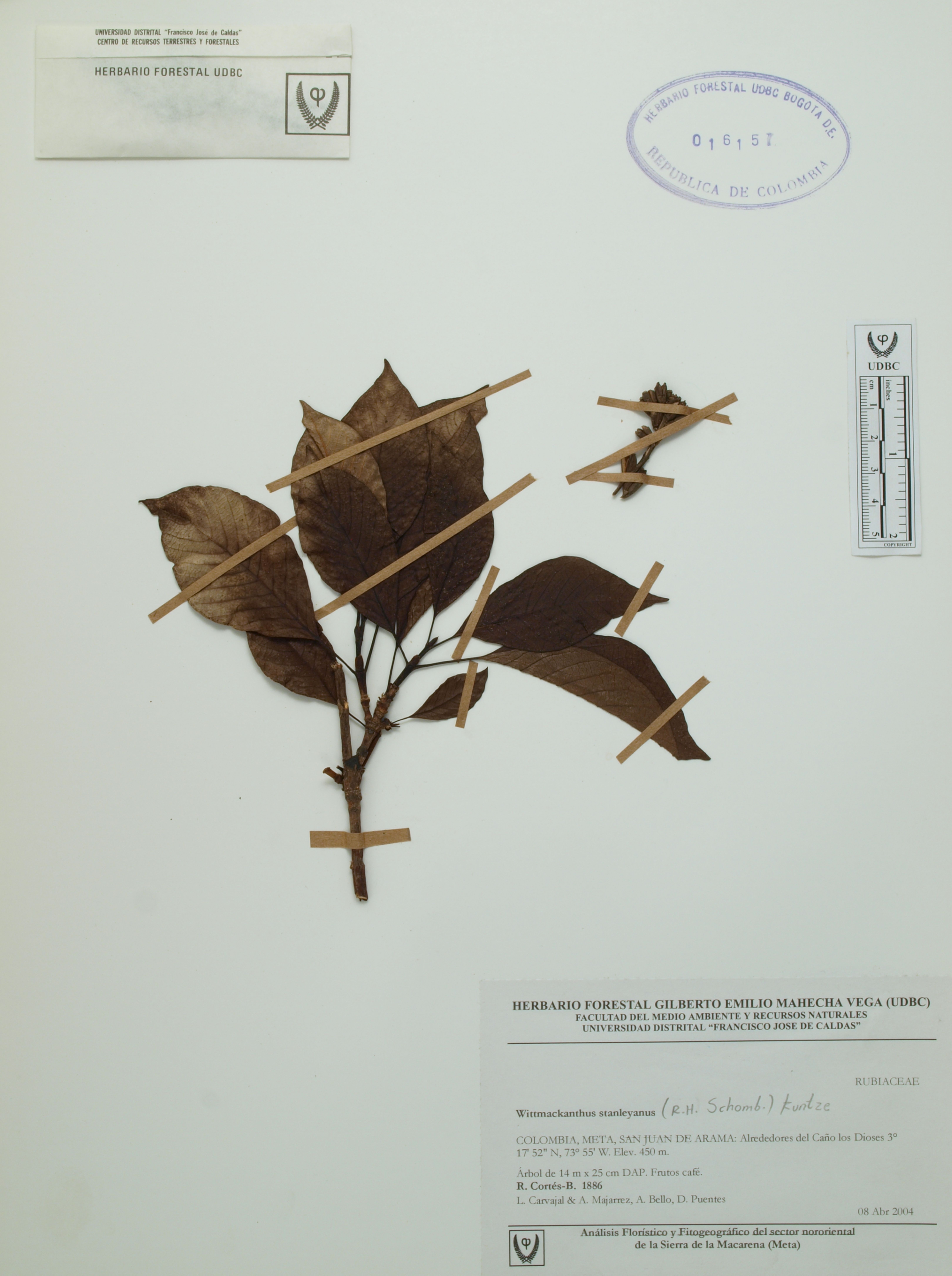 Fotografía del ejemplar Cortés-B., R. 1886, determinado como Wittmackanthus stanleyanus en el año 2004