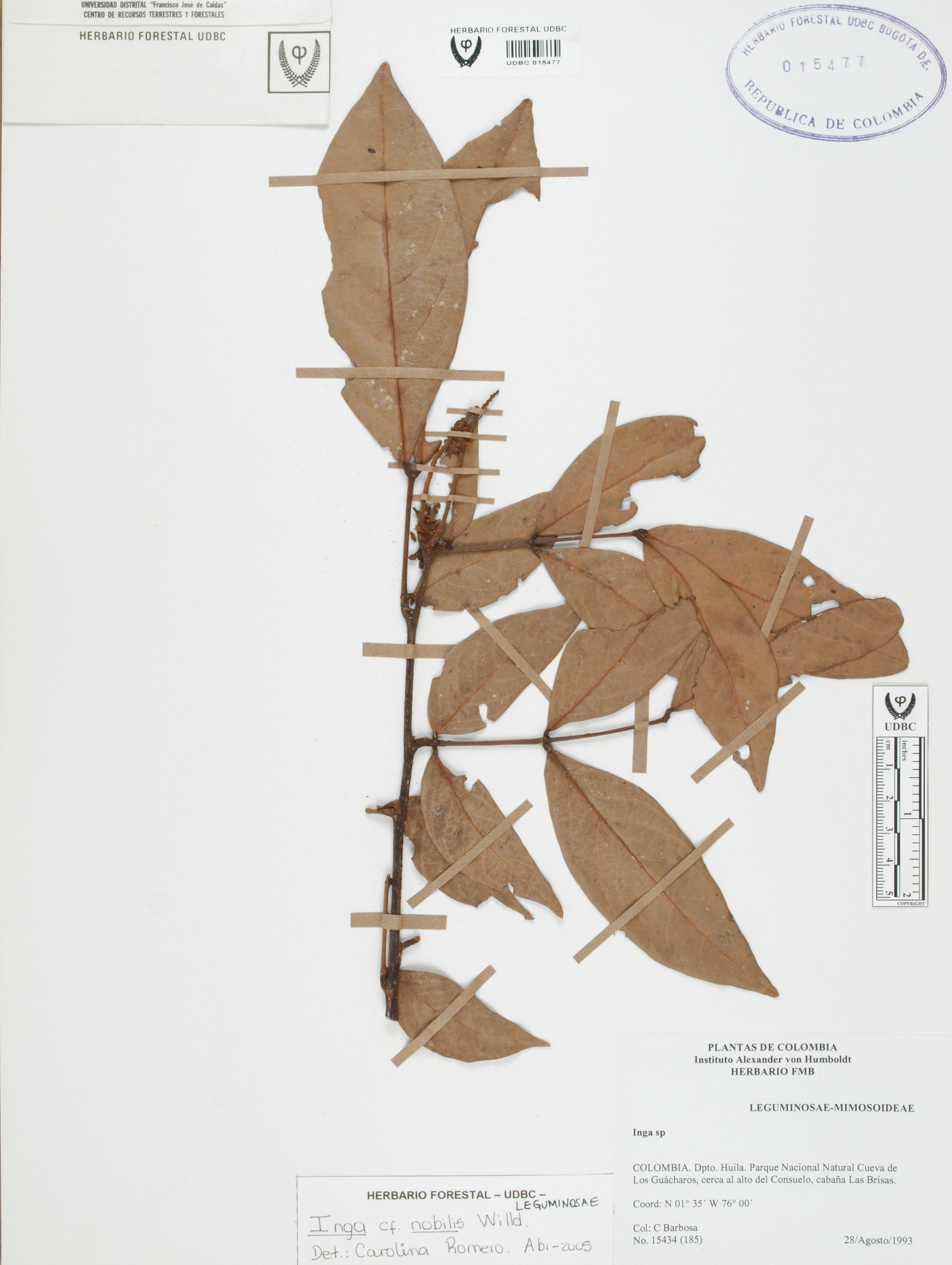Fotografía del ejemplar Barbosa, C. 15434, determinado como Inga nobilis en el año 2005