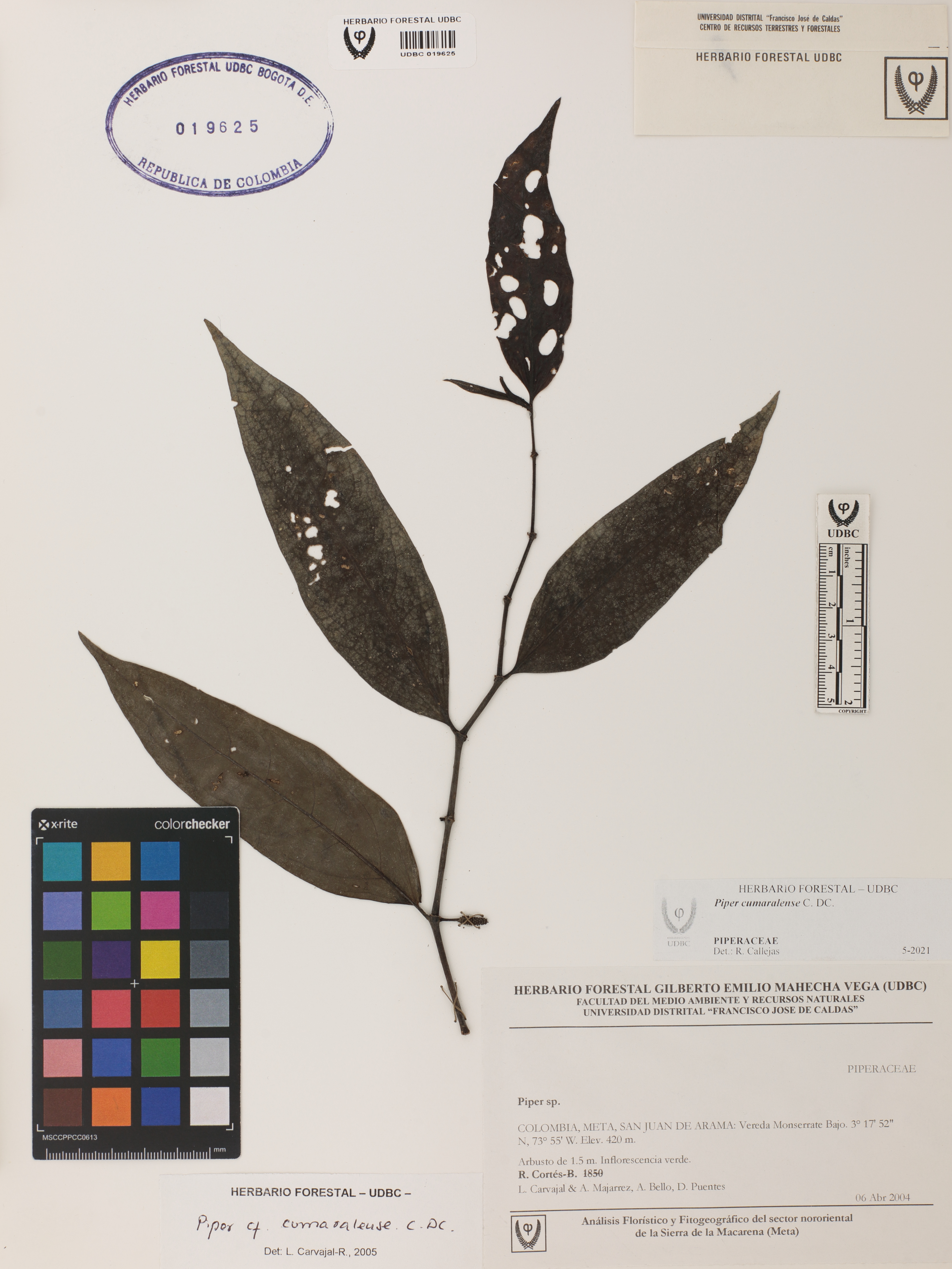 Fotografía del ejemplar Cortés-B., R. 1850, determinado como Piper cumaralense en el año 2021