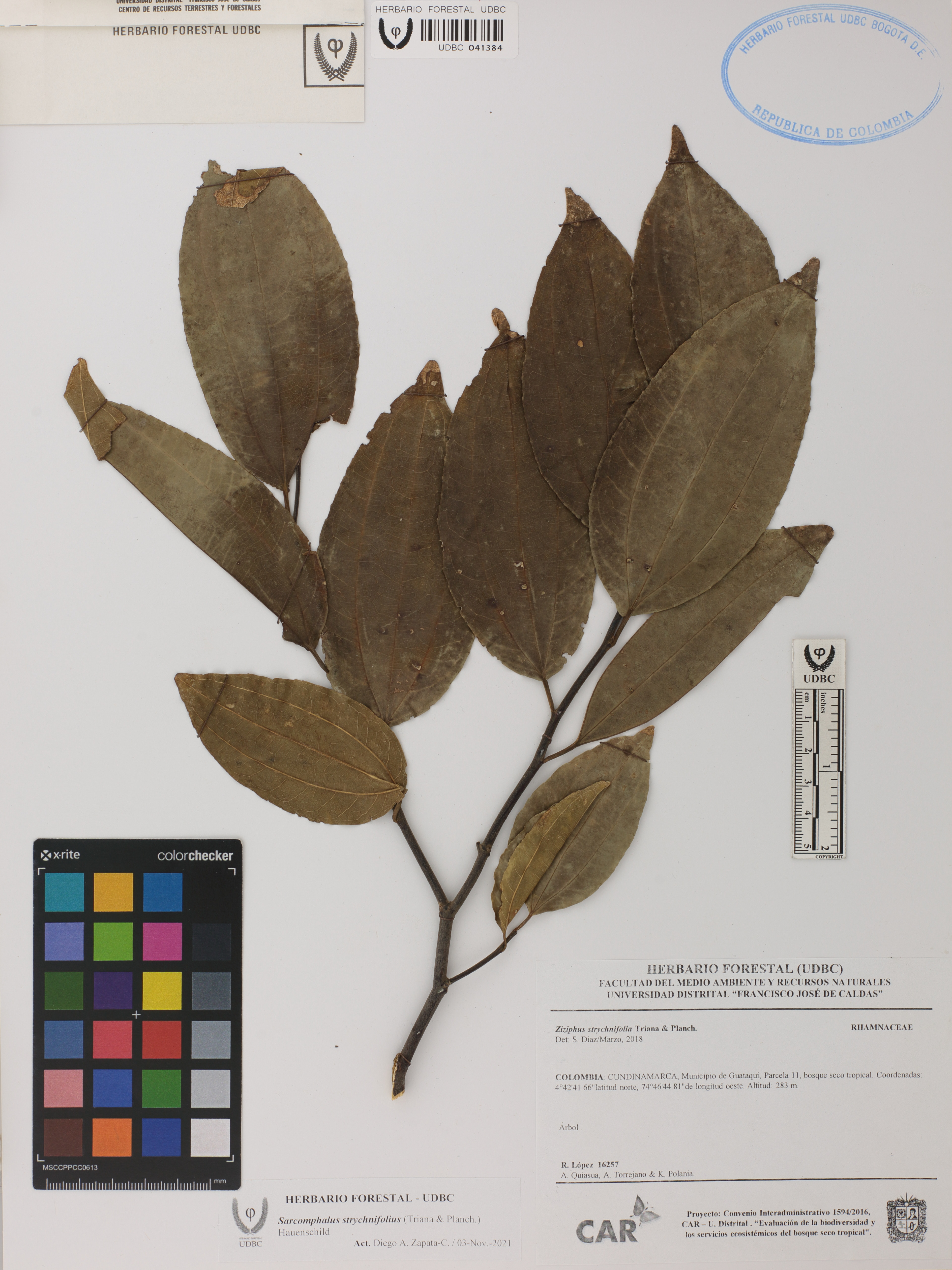 Fotografía del ejemplar López, R. 16257, determinado como Sarcomphalus strychnifolius en el año 2018