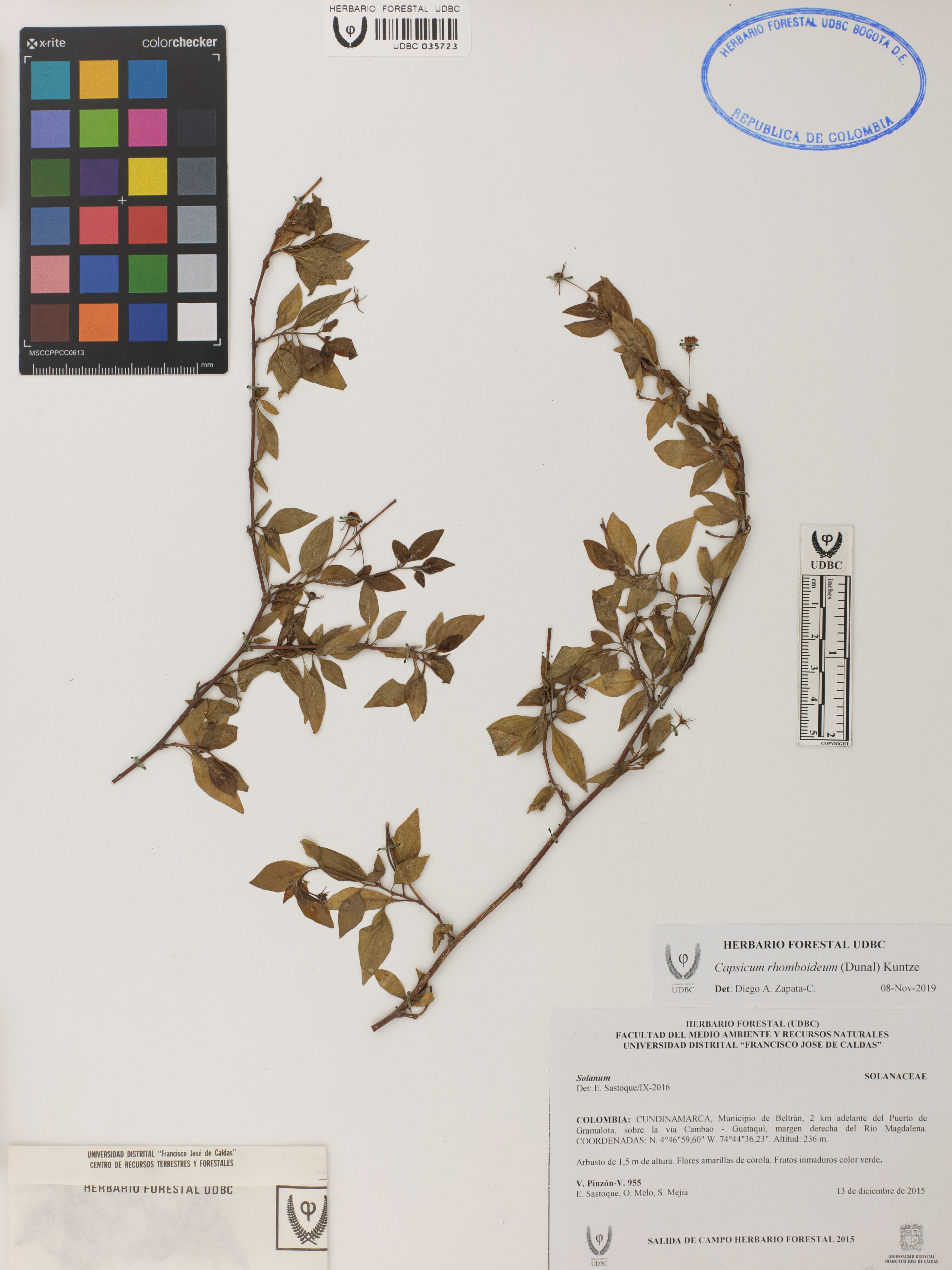 Fotografía del ejemplar Pinzón-V., V. 955, determinado como Capsicum rhomboideum en el año 2019