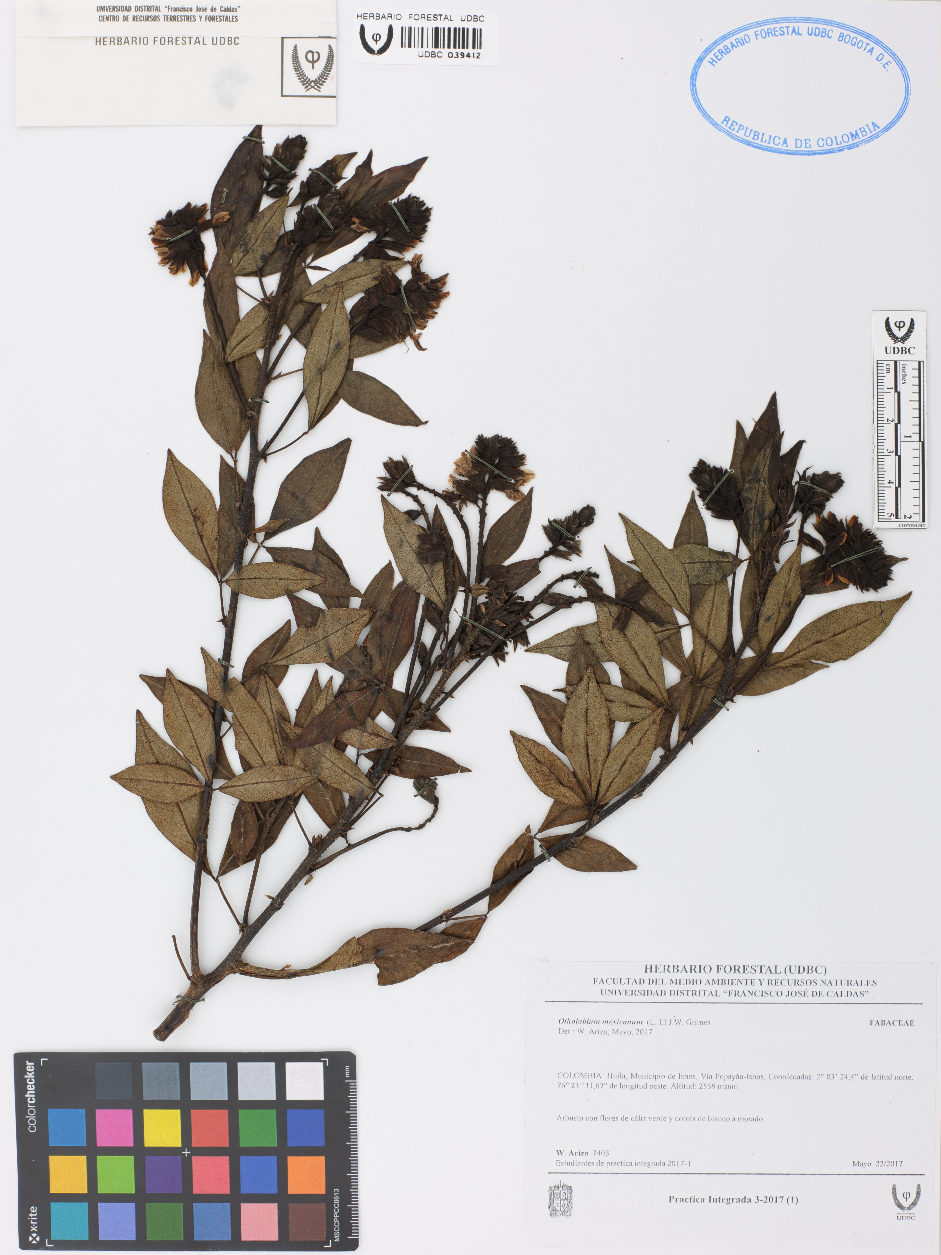 Fotografía del ejemplar Ariza, W. 7403, determinado como Otholobium mexicanum en el año 2017